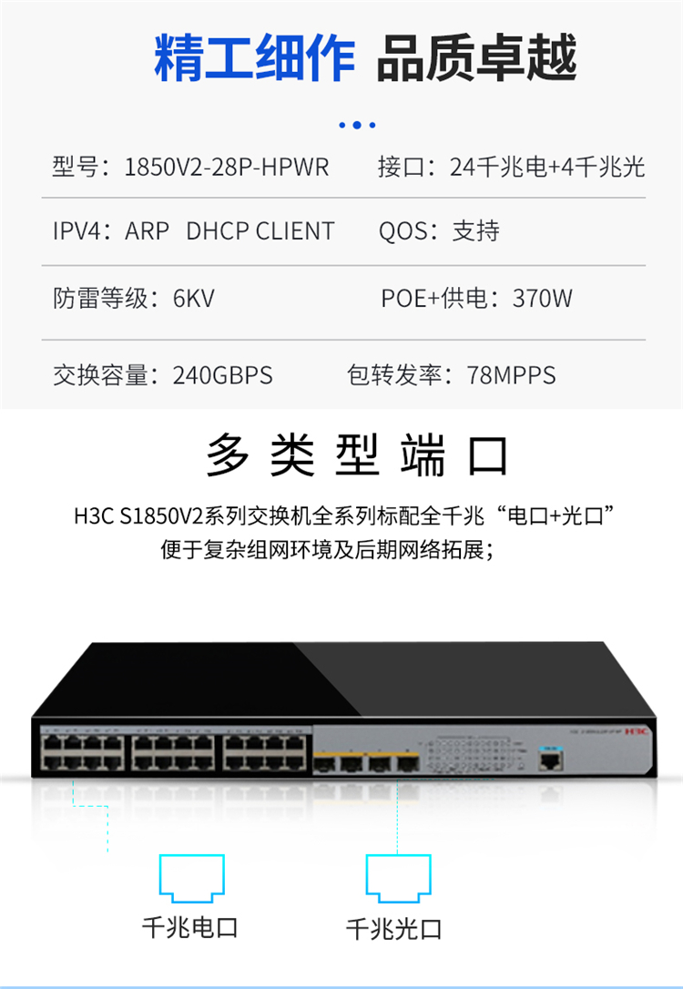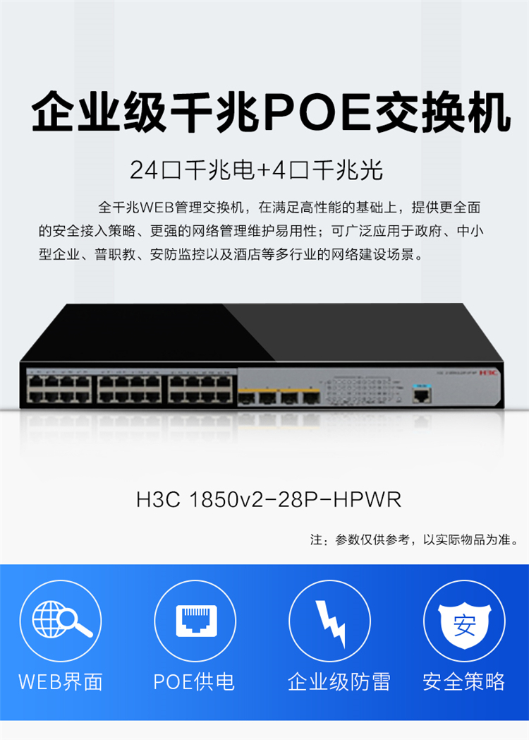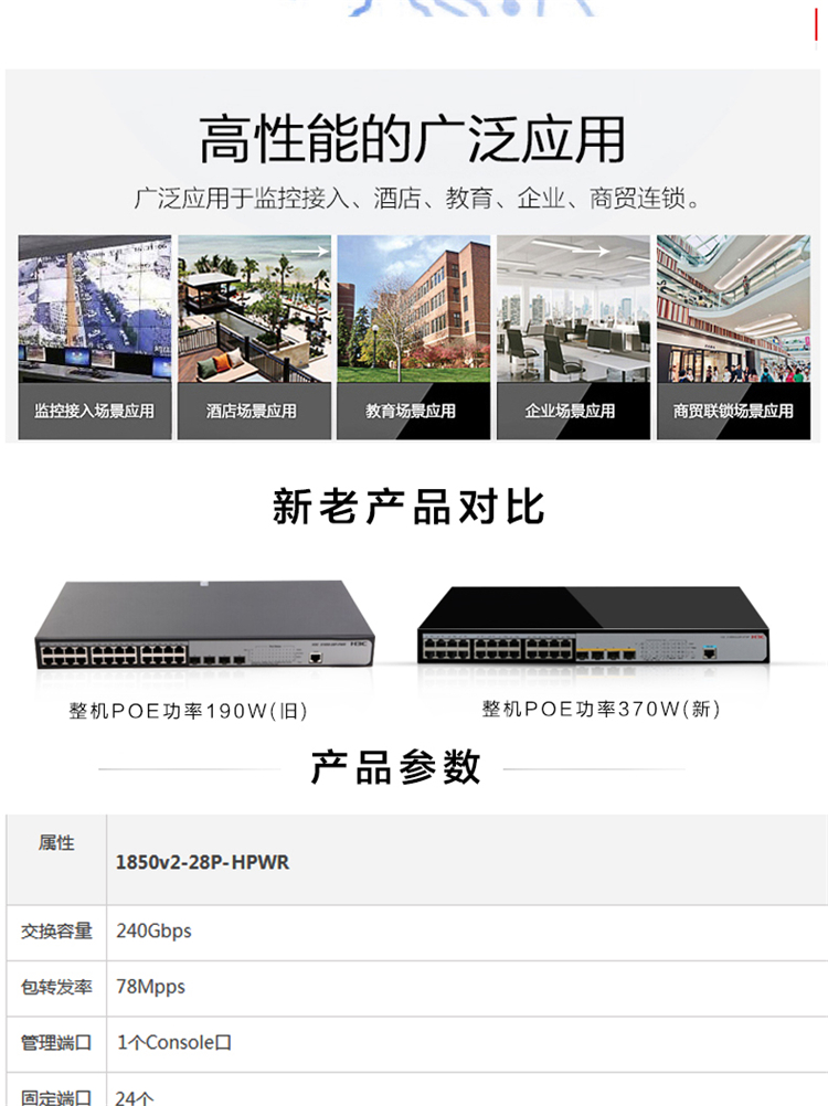 商品名称: 华三(H3C) S1850V2-28P-HPWR 24口交换机 黑色(单位:台)