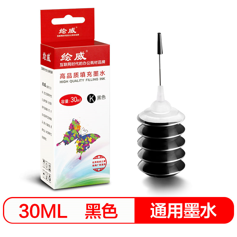 • 商品名称:绘威 30ml 通用型 填充打印机墨水黑色墨水(单位:瓶)