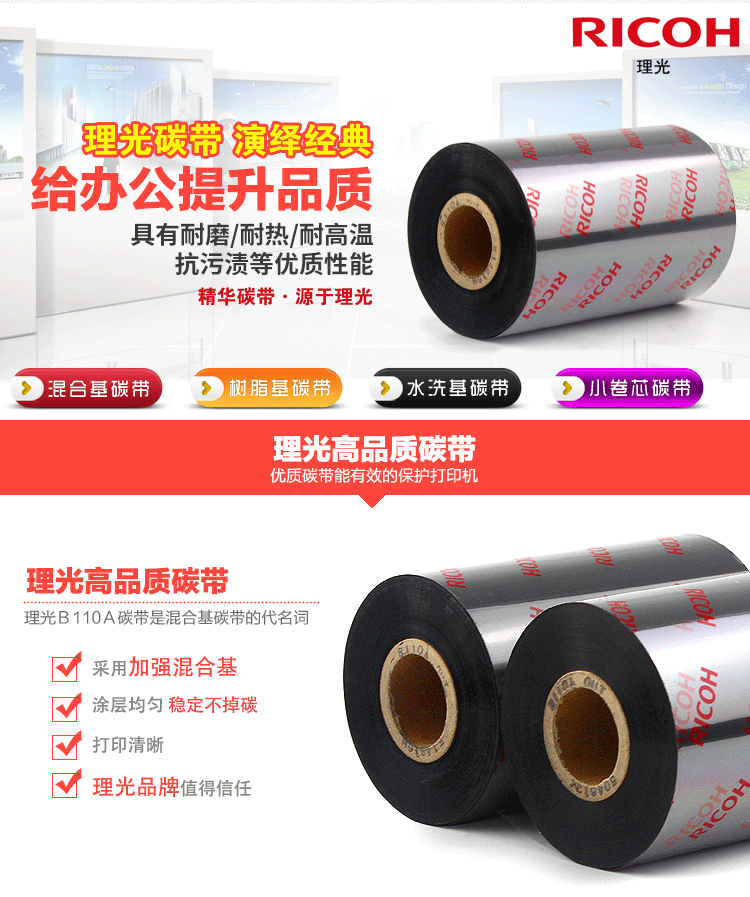 办公耗材  > 打印耗材  > 色带  >  理光  >  理光 B110CR 60MM*300M 全树脂碳带 热转印标签机色带 黑色(单位:卷)