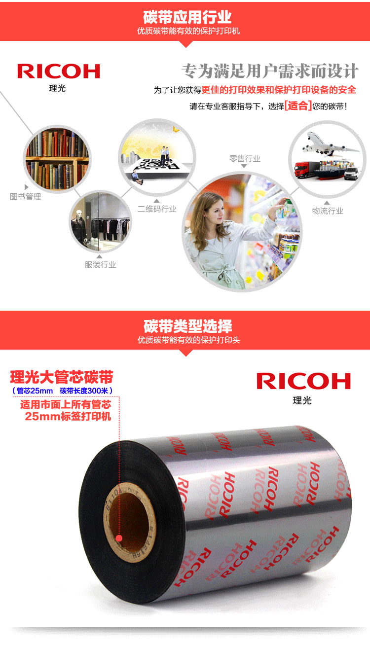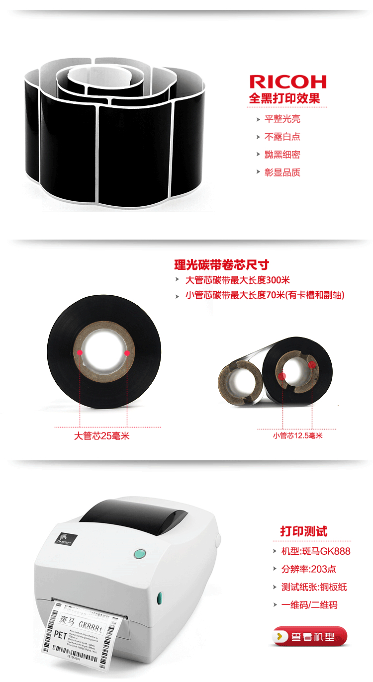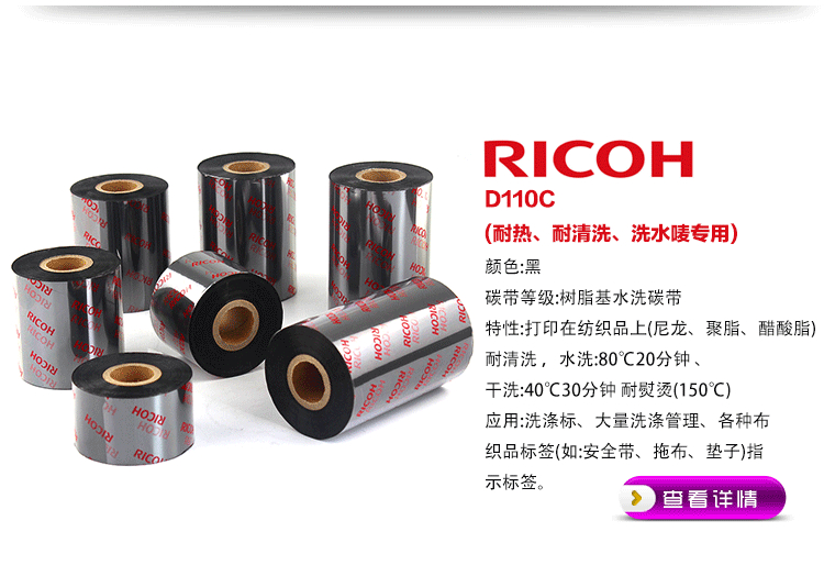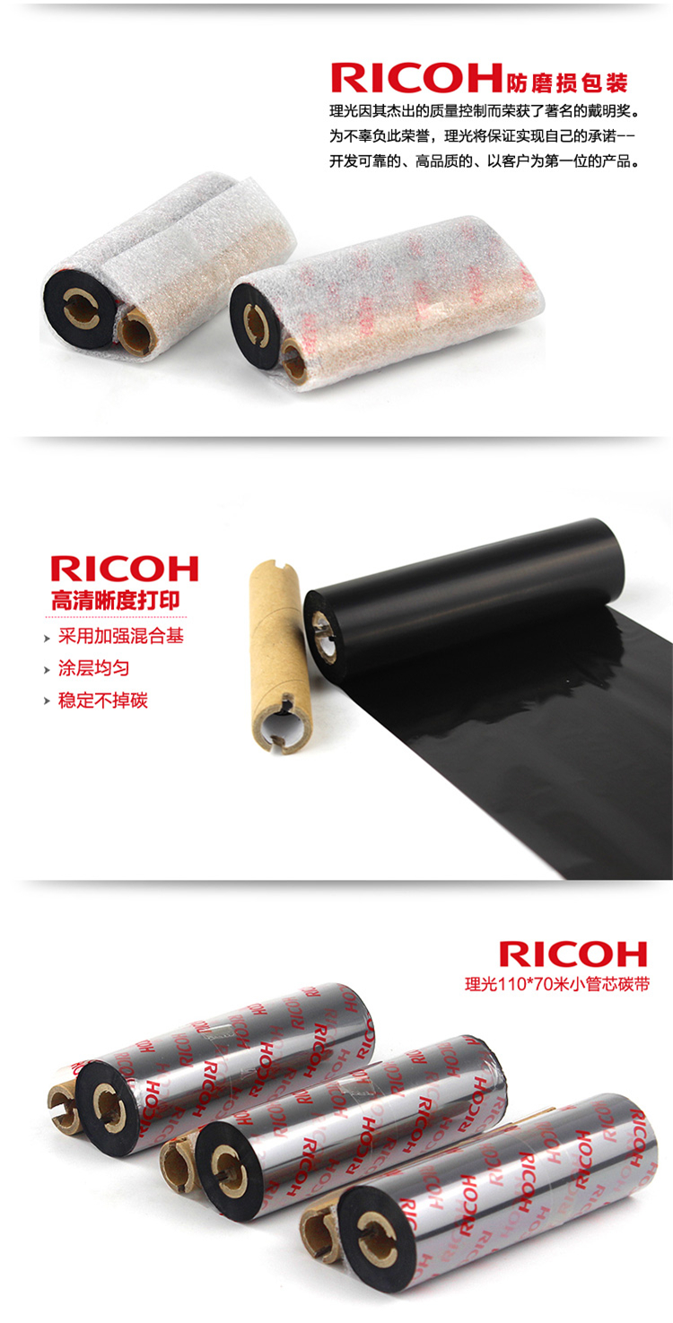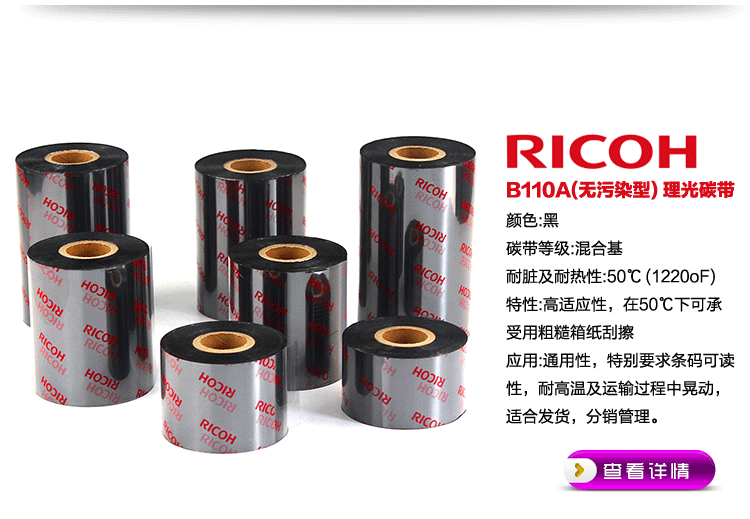 • 商品名称:理光 B110CR 60MM*300M 全树脂碳带 热转印标签机色带 黑色(单位:卷)