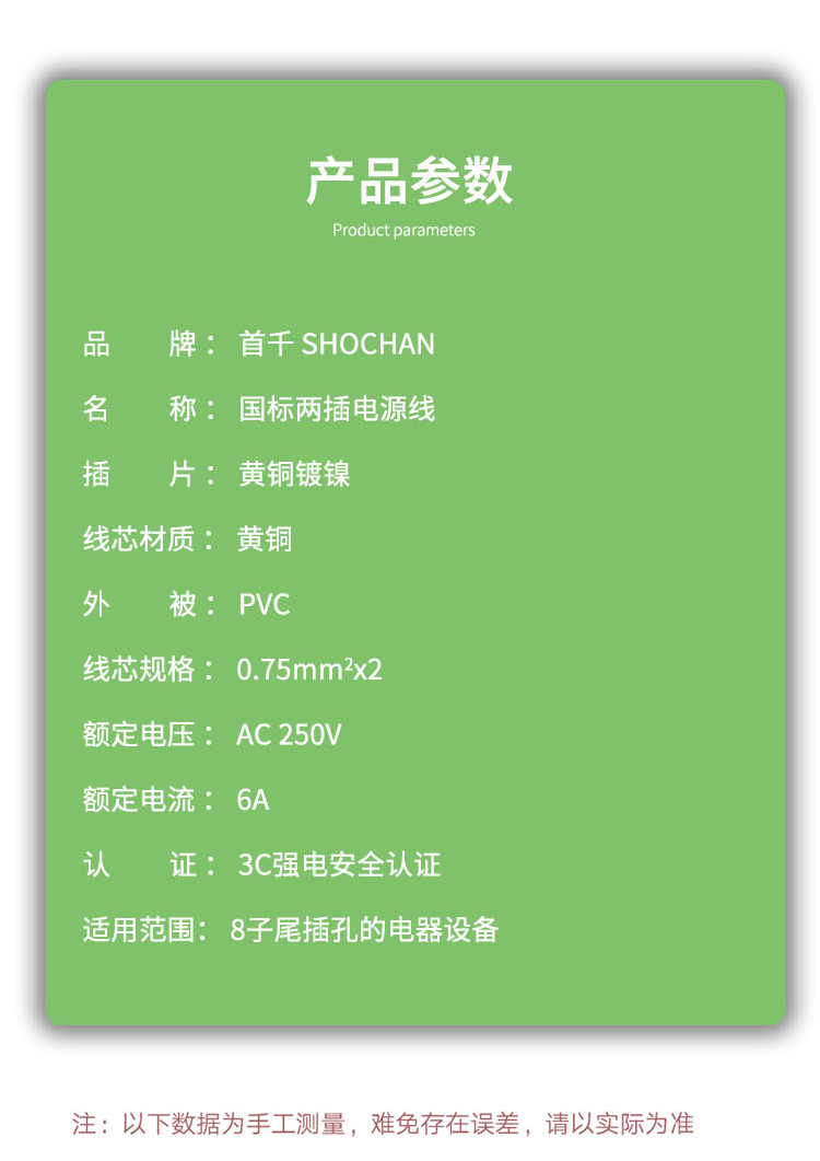 • 商品名称:首千(SHOCHAN) SQ-WY28D 国标双孔八字电源线两孔(单位:条)