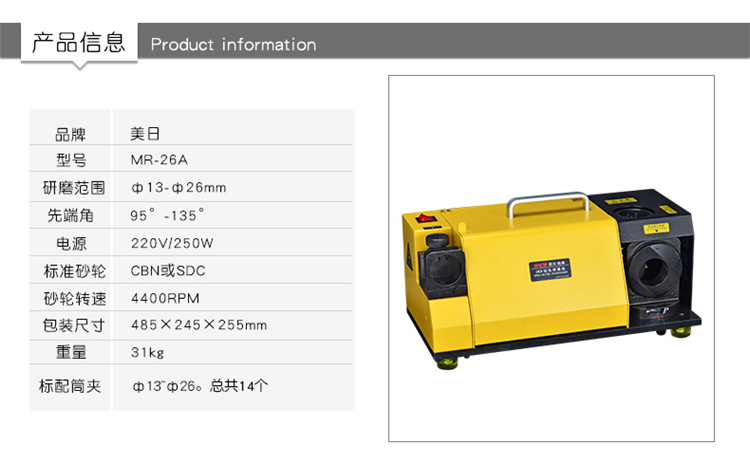 • 商品名称:美日 MR-26A 钻头研磨机 美日机床 小钻头研磨机磨钻头机电动磨刀机修磨麻花钻头工具 配置SDC砂轮 (单位:台)