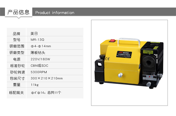 • 商品名称:美日 MR-13Q 薄板钻头研磨机 美日机床砂轮打磨机汽车钣金钻头修磨工具 配置CBN砂轮 (单位:台)