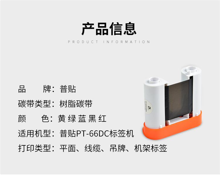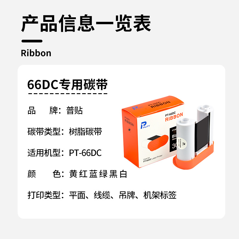 • 商品名称:普贴(PUTY) PT-66DC 标签机碳带固定资产手持条码标签打印机色带 白色 PT-R5025WE 单位:个