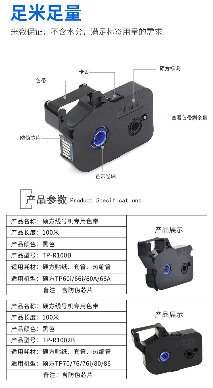 商品名称: 硕方 TR1002B 线号机色带 TP70打号机碳带号码管打印机标签条码原装色带 TP-R1002B黑色TP70/76i/80/86(单位:个)