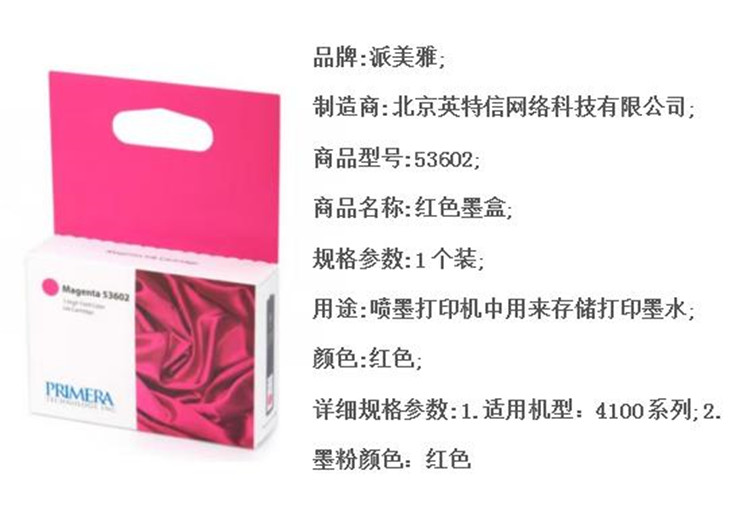 • 商品名称:派美雅 Paimeiya 53602 墨盒 红色 适用于派美雅4051 计价单位:个