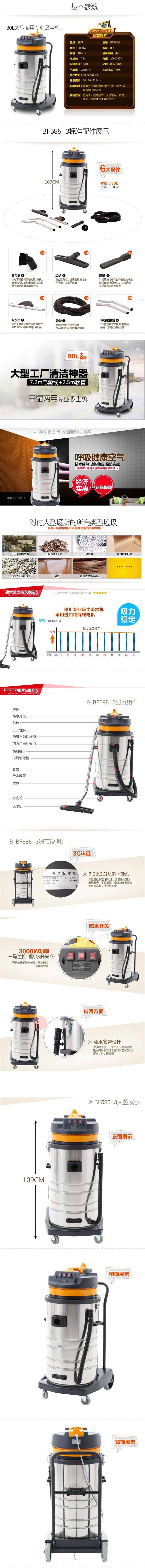• 商品名称:东成 220V 3KW 80L 带15米软管 工业吸尘吸水机 (单位:套)