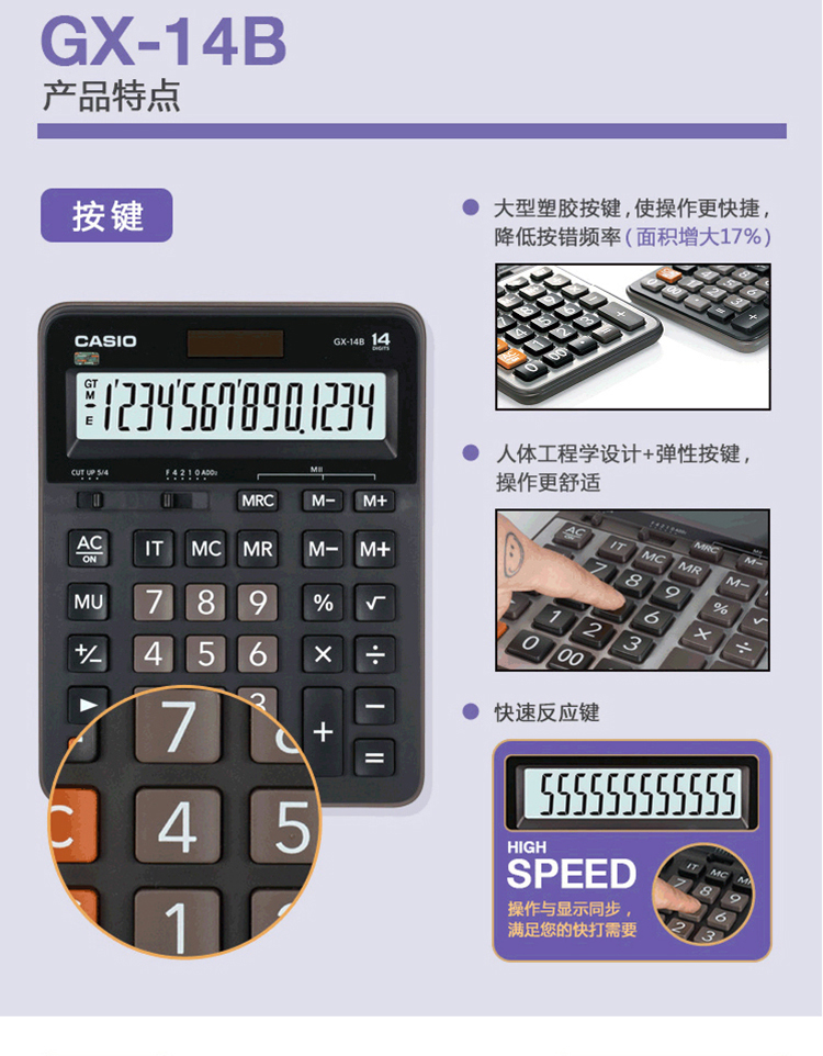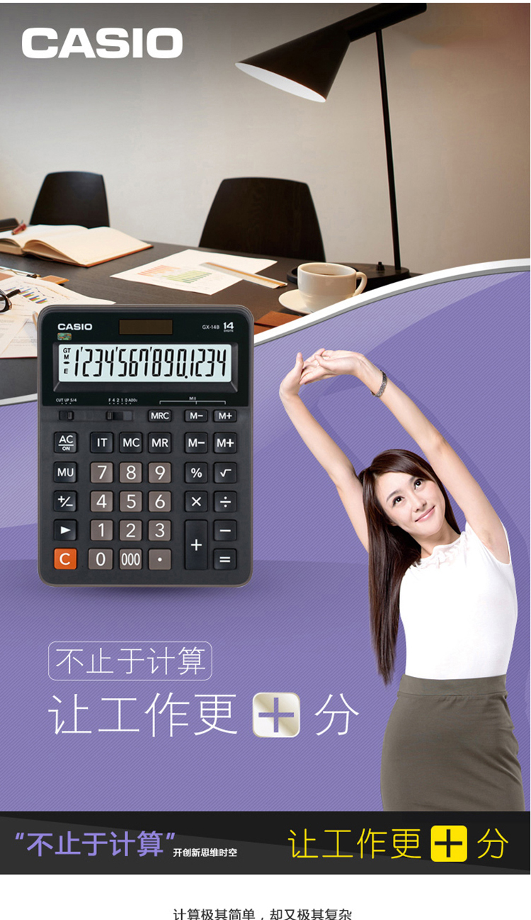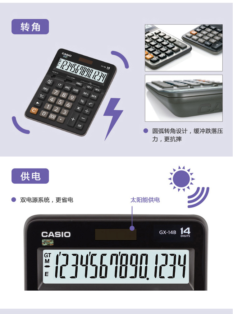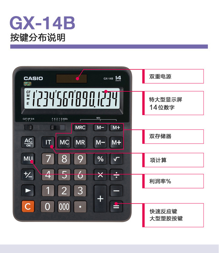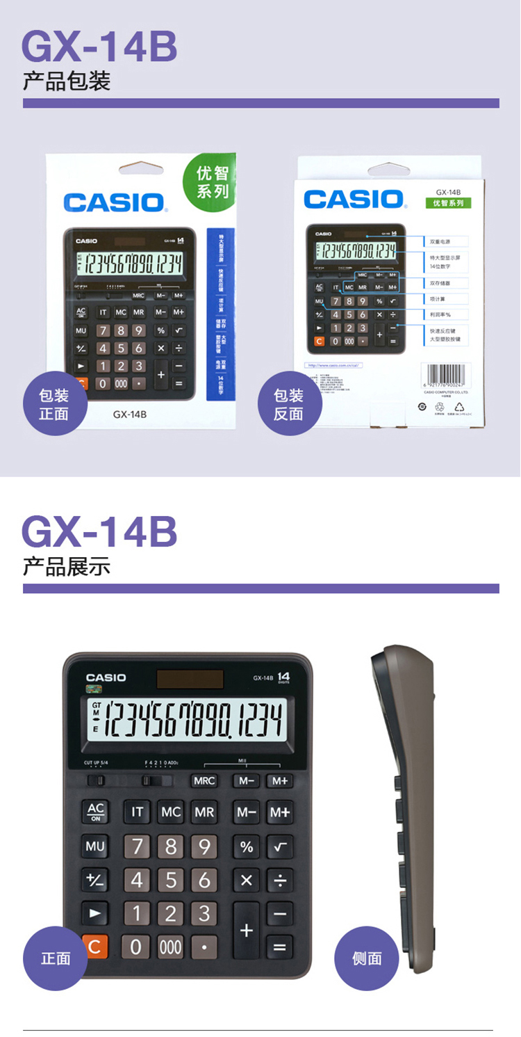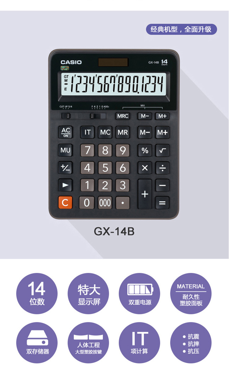 办公文具  > 常用文具  > 计算器  >  卡西欧/CASIO  >  卡西欧(CASIO) GX-14B 日常商务优智系列超大型机 黑 单位:台