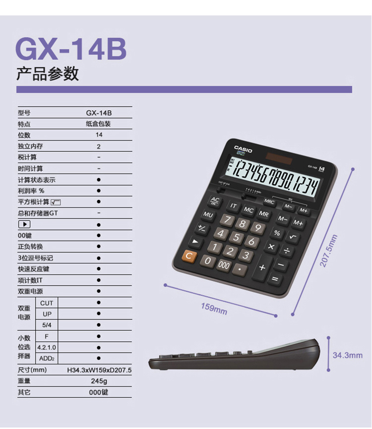 • 商品名称:卡西欧(CASIO) GX-14B 日常商务优智系列超大型机 黑 单位:台