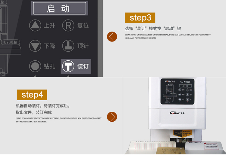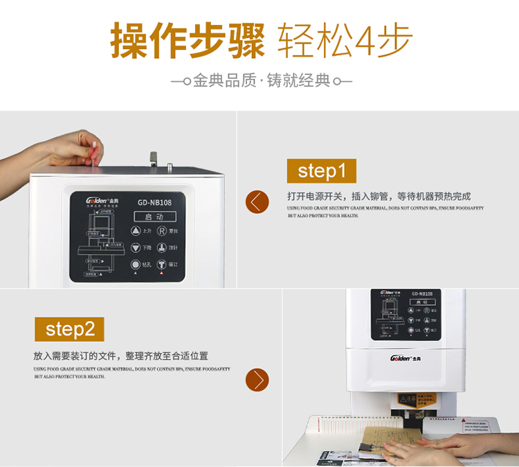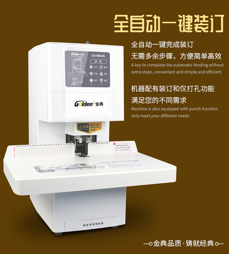 办公设备  > 财务/行政设备  > 装订/塑封设备及配件  >  金典/GOLDEN  >  金典 GD-NB108 装订机财务凭证装订机 全自动打孔装订 配(单位:台)