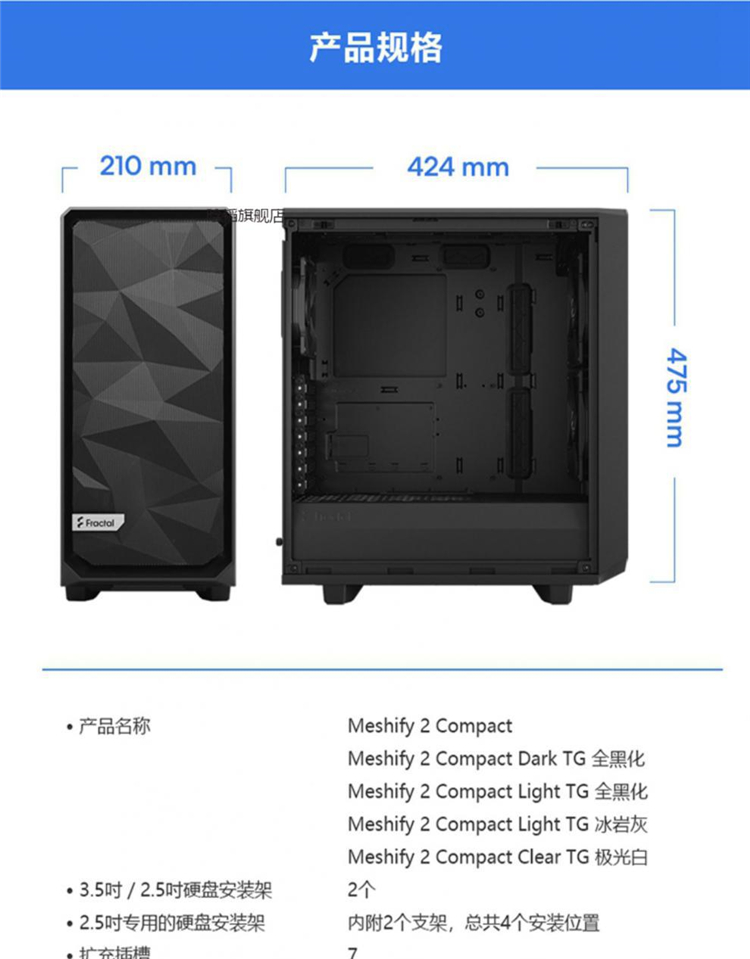 • 商品名称:耐辉顿 Meshify 2 Compact中塔分型ATX白色侧透 分形工艺分形工艺机箱 (单位:台)