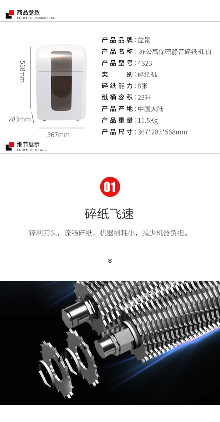 • 商品名称:盆景 4S23 办公高保密静音碎纸机 白(单位:台)