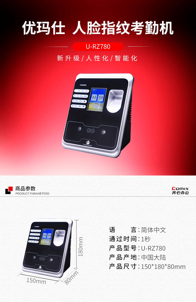 • 商品名称:优玛仕 U-RZ780 人脸指纹考勤机 配(单位:台)