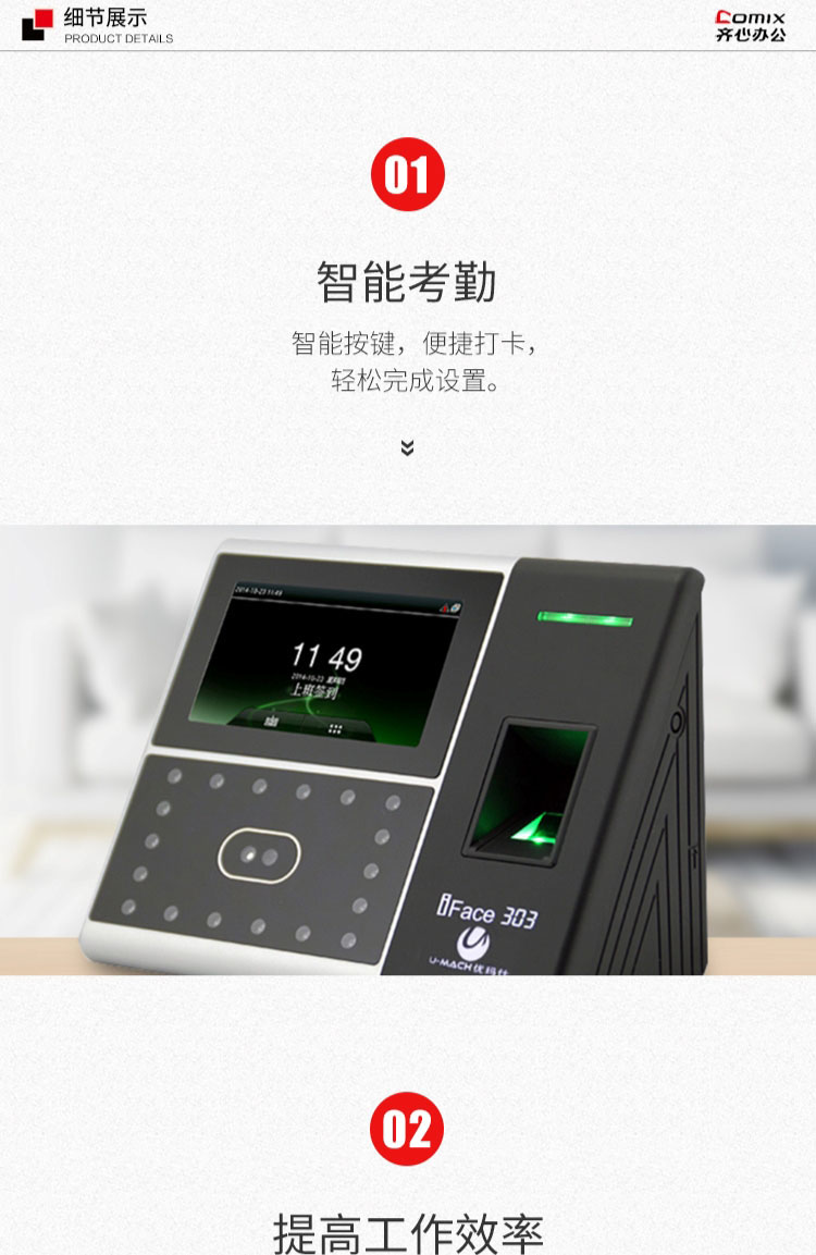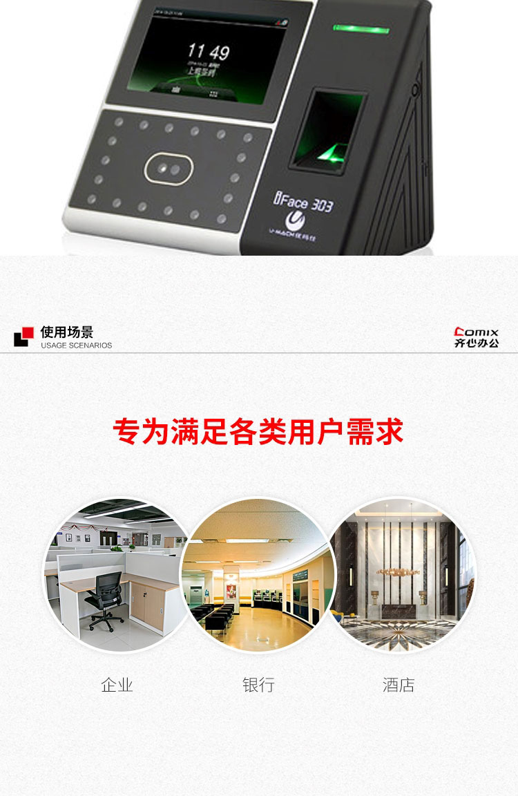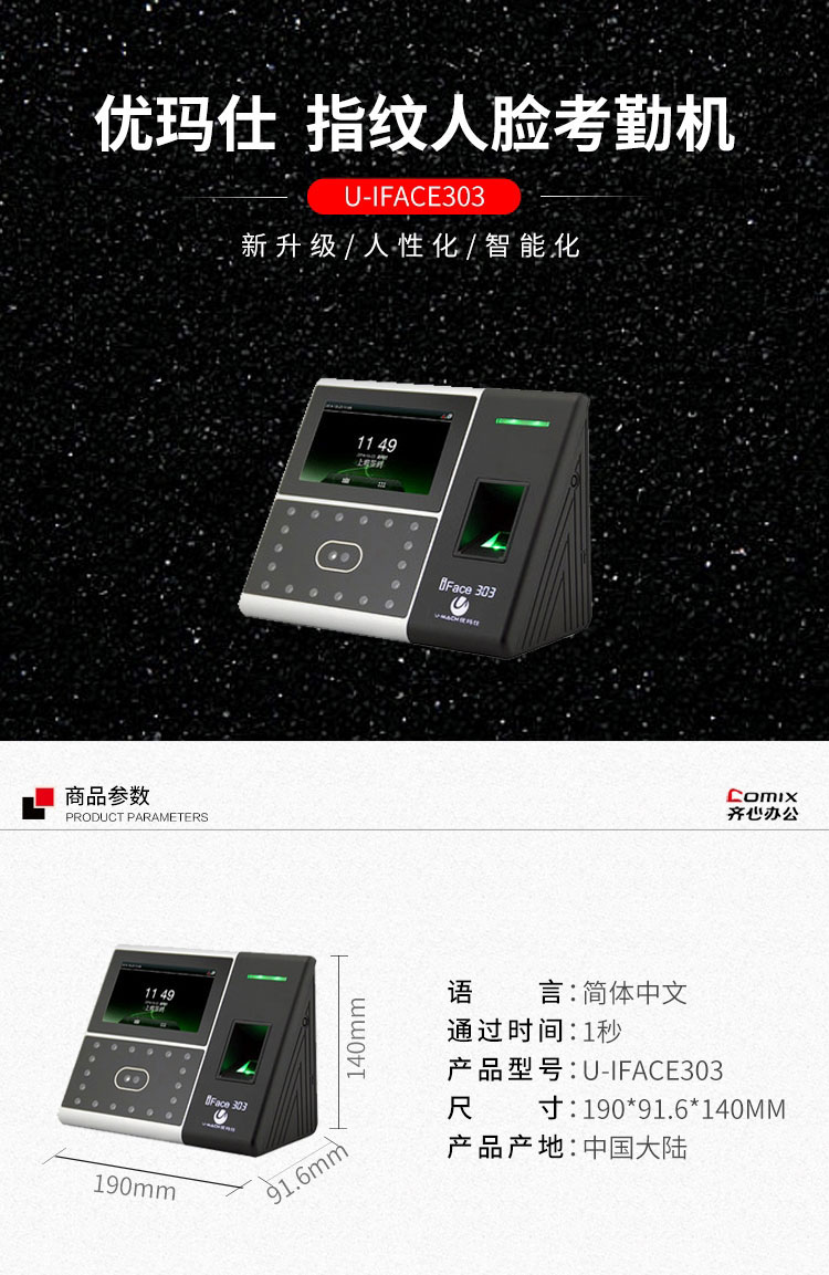 • 商品名称:优玛仕 U-iFace303 人脸指纹考勤机 配(单位:台)