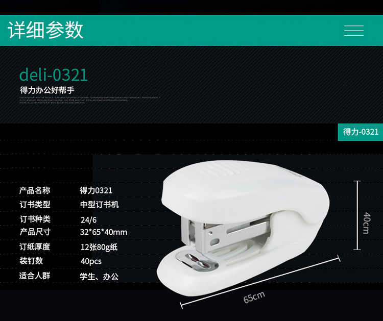 • 商品名称:得力 0321迷你订书机 12#针 彩色(单位:台)