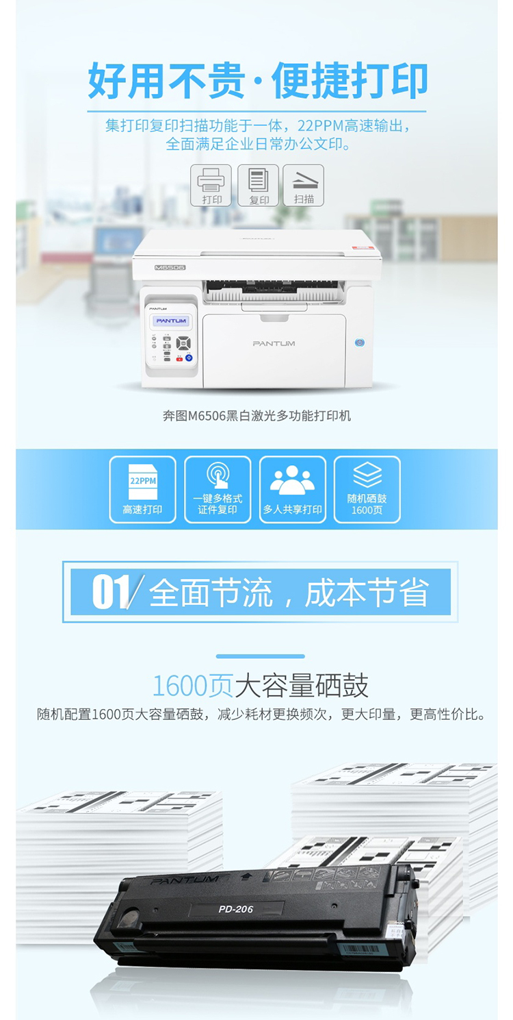 • 商品名称:奔图 M6506 A4 多功能黑白激光一体机(单位:台)