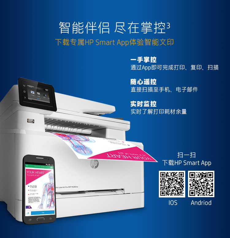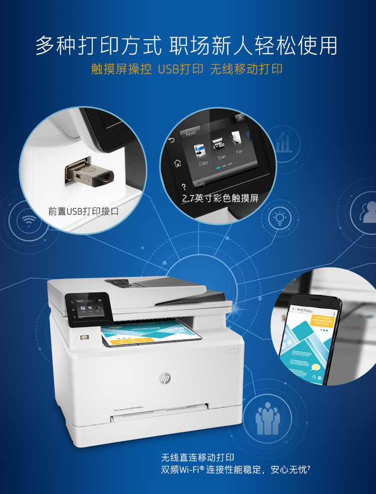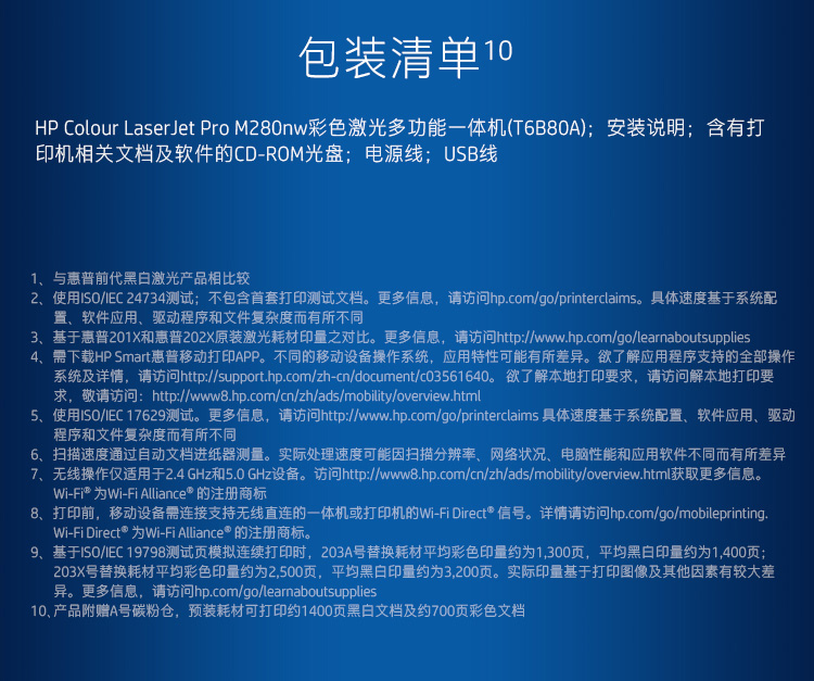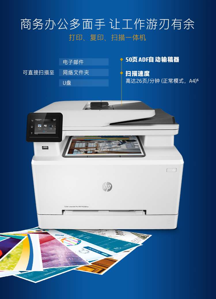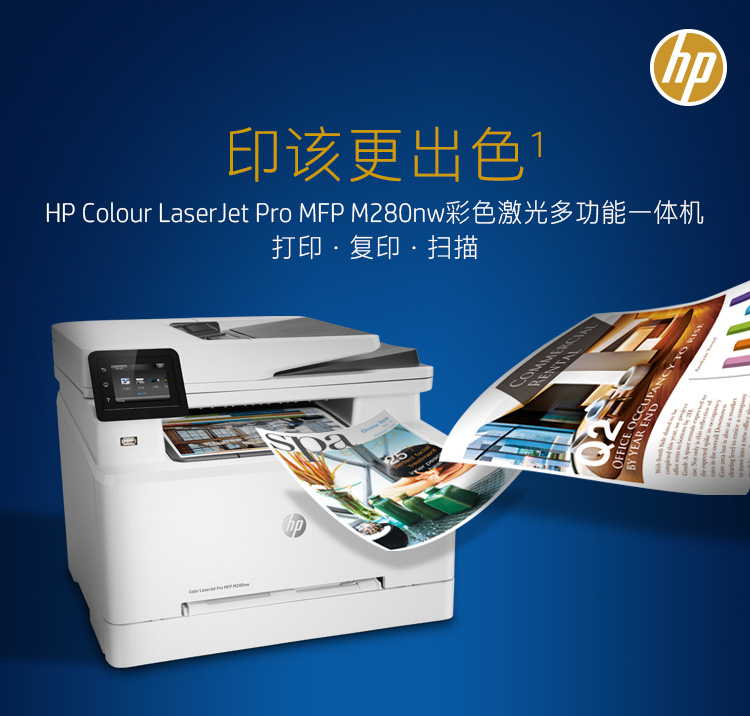 • 商品名称:惠普 Colour LaserJet Pro M280nw 彩色激光多功能一体机(M277N升级版)(单位:台)