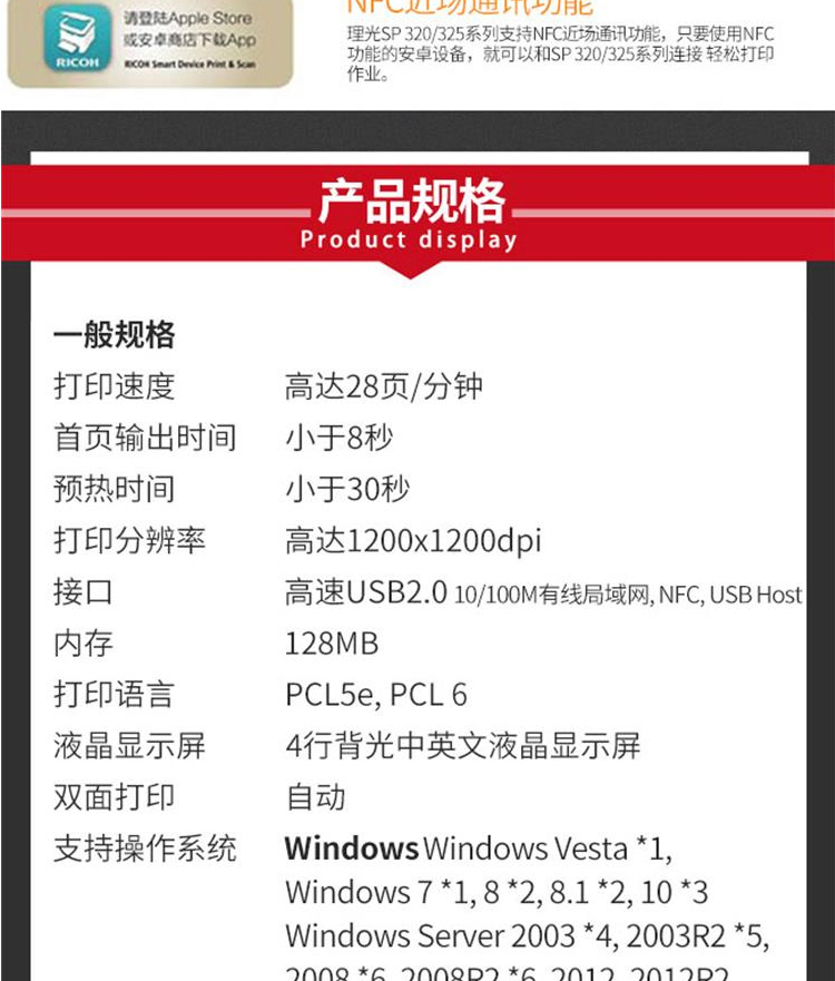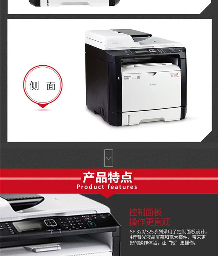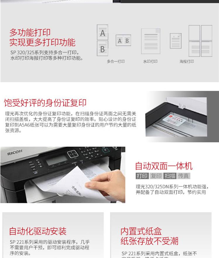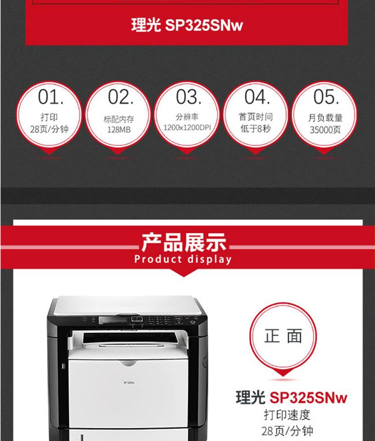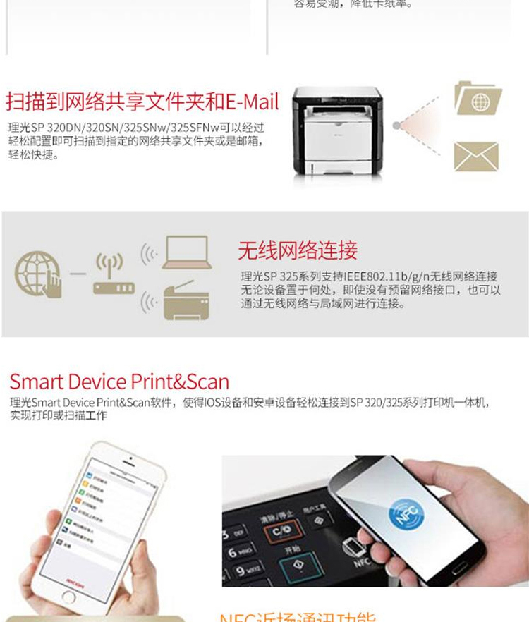 • 商品名称:理光 SP 325SNw A4 黑白激光三合一 多功能一体机 灰白色