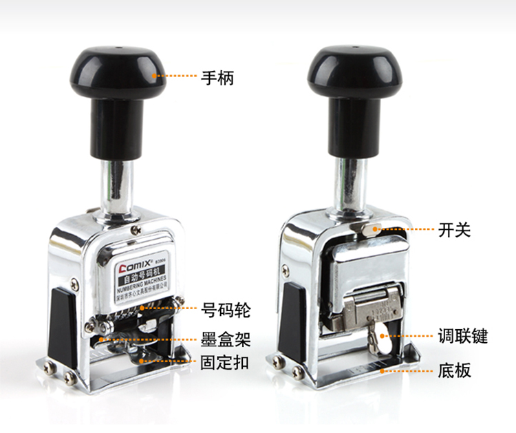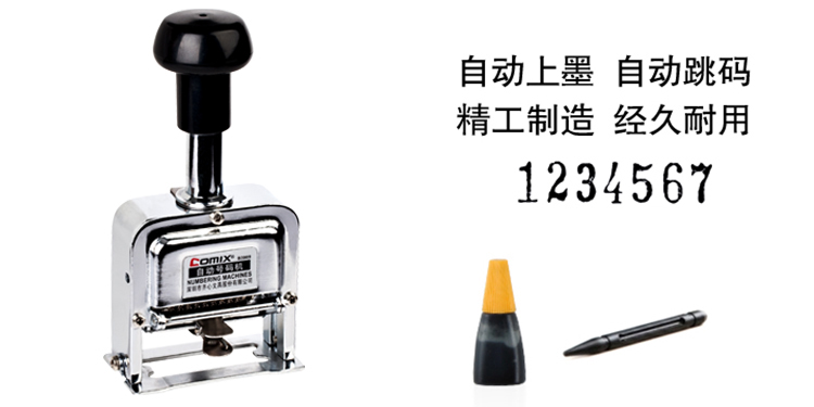 办公文具  > 常用文具  > 印章/号码机  >  齐心/COMIX  >  齐心 B3907 耐用精钢自动号码机 7位 配 (定制)
