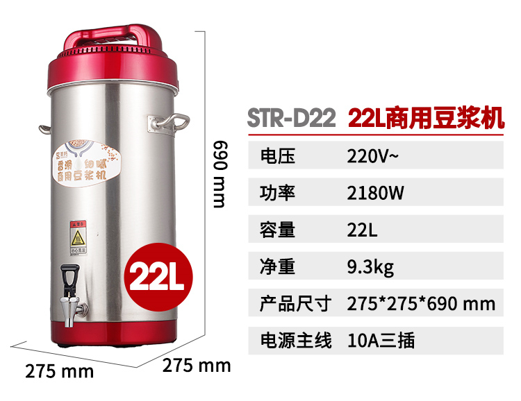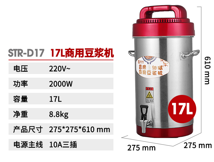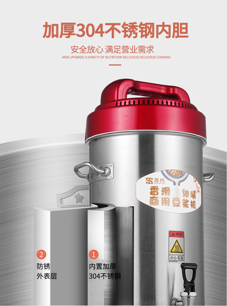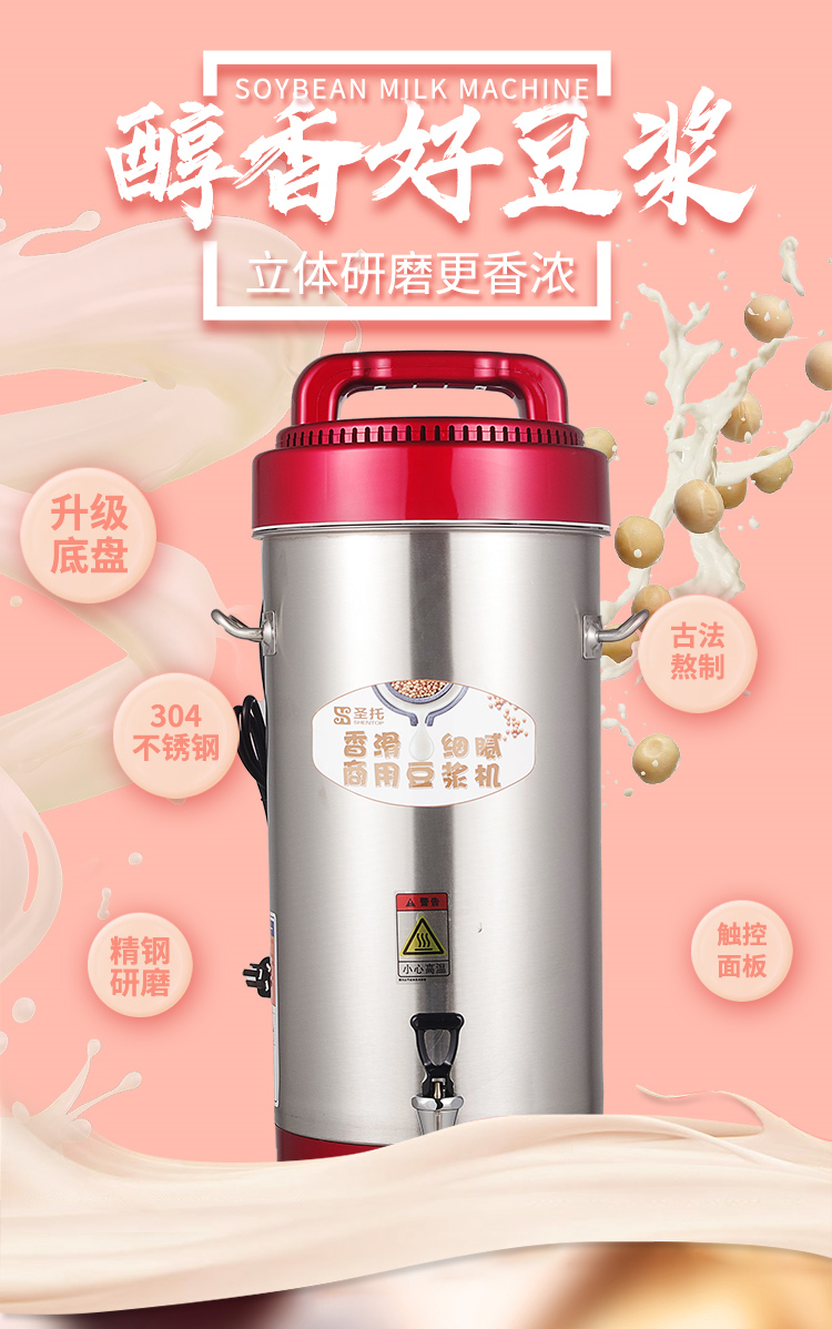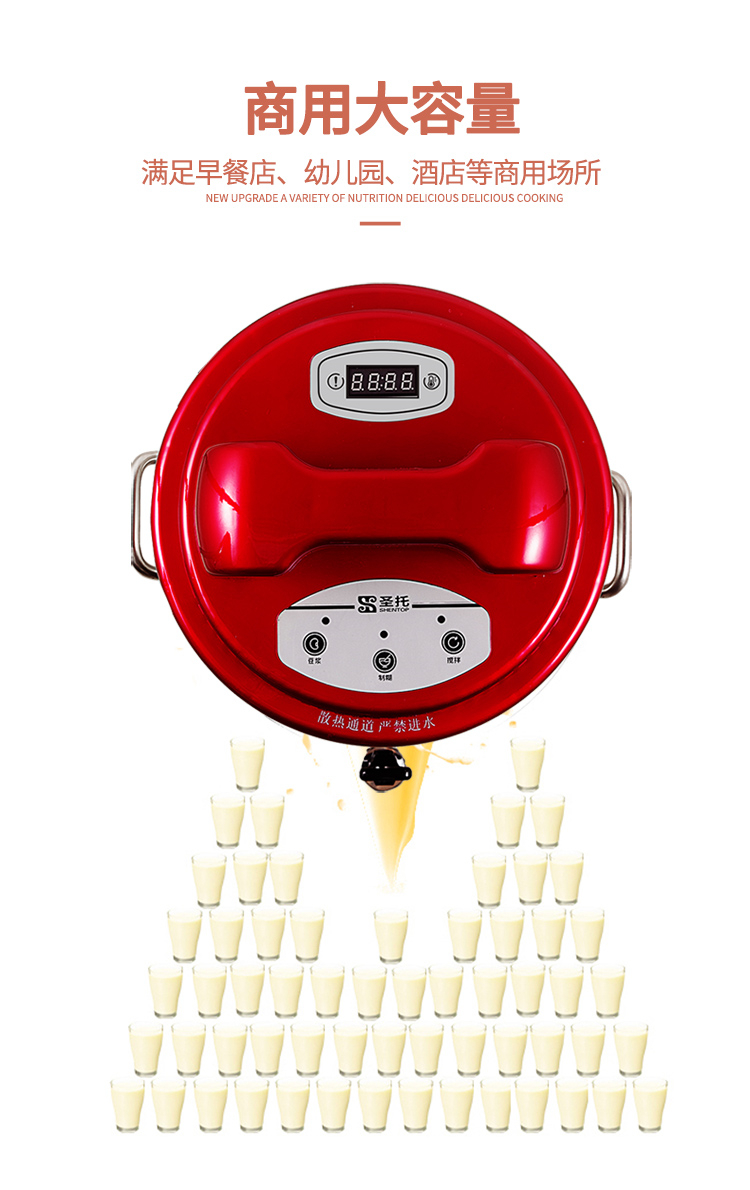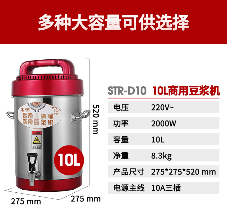 • 商品名称:圣托 STR-D10 10L 商用全自动大容量无渣免滤磨浆机现磨豆浆机 (单位:台)