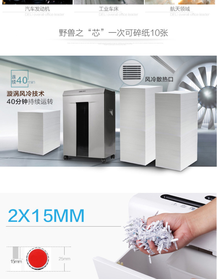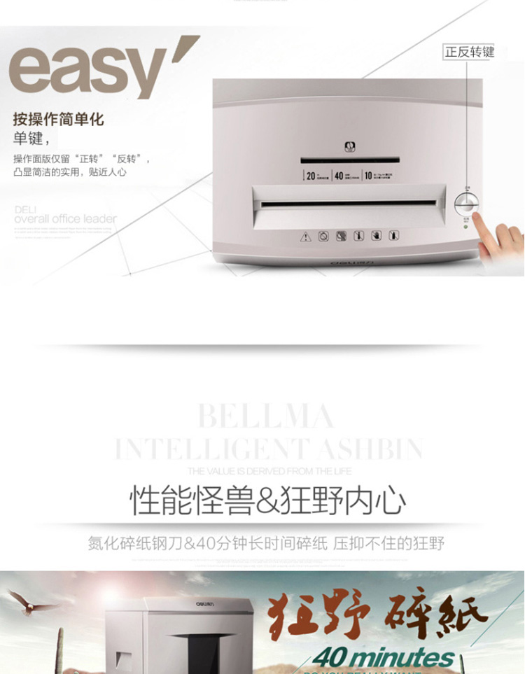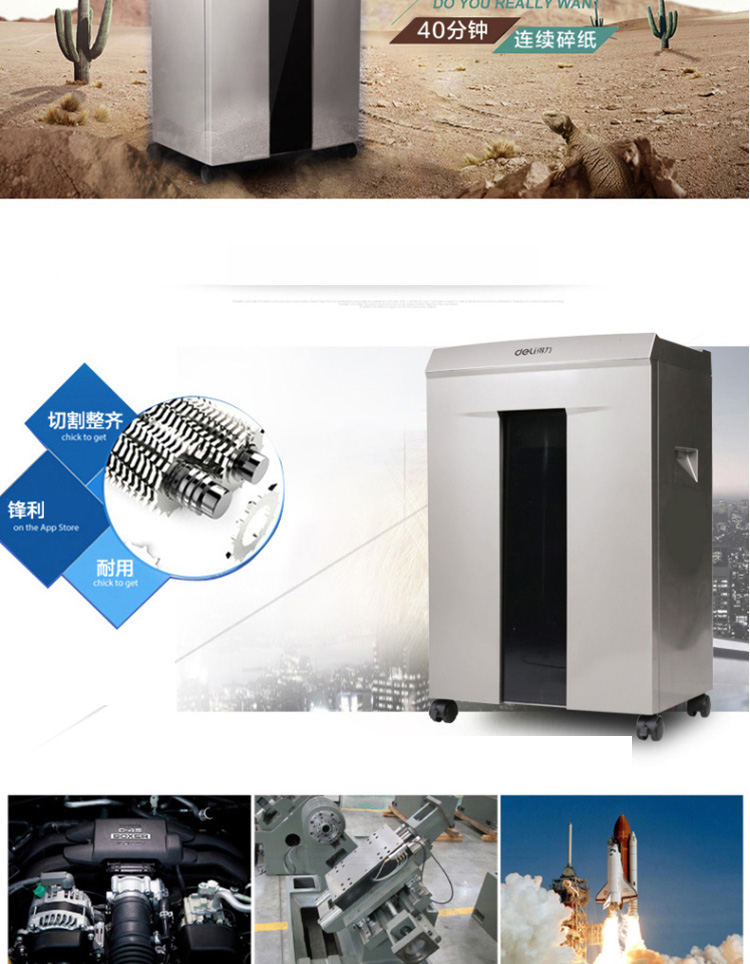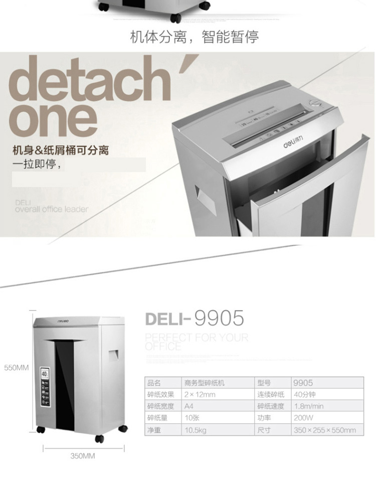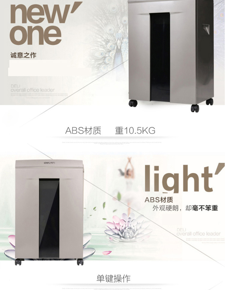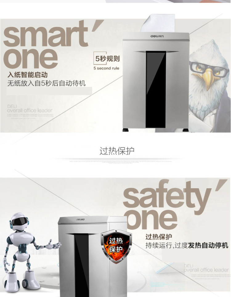 • 商品名称:得力 9905 强力保密型碎纸机 4级40分钟 灰(单位:台)