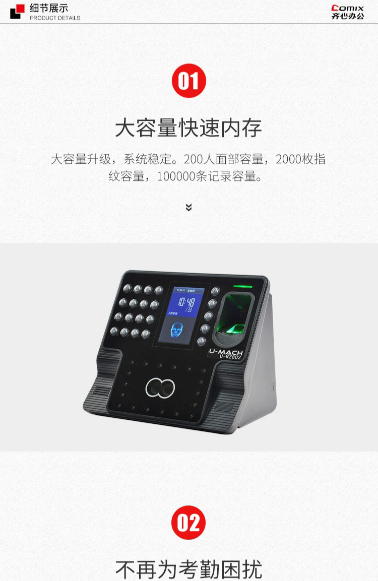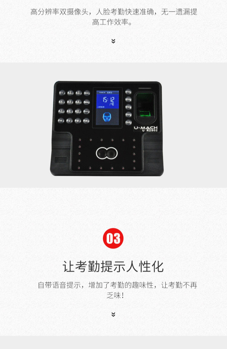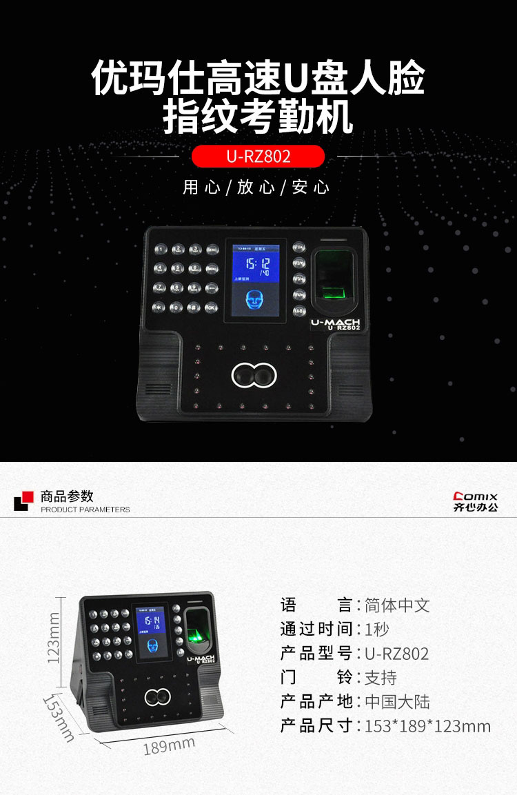 • 商品名称:优玛仕 U-RZ802 高速U盘人脸指纹考勤机 配(单位:台)