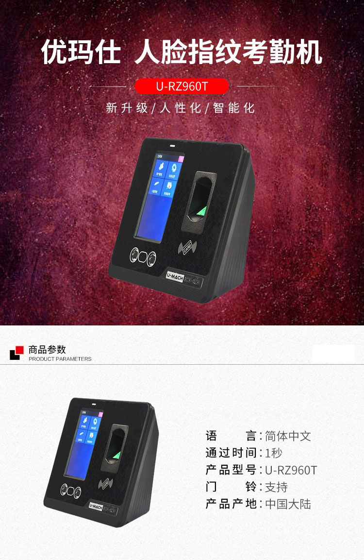 • 商品名称:优玛仕 U-RZ960T 人脸指纹网络考勤机 配(单位:台)