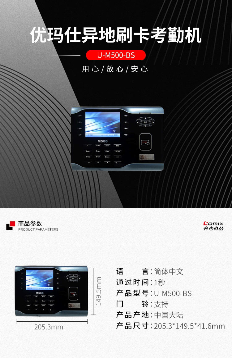 商品名称: 优玛仕 U-M500-BS 异地刷卡考勤机 配(单位:台)