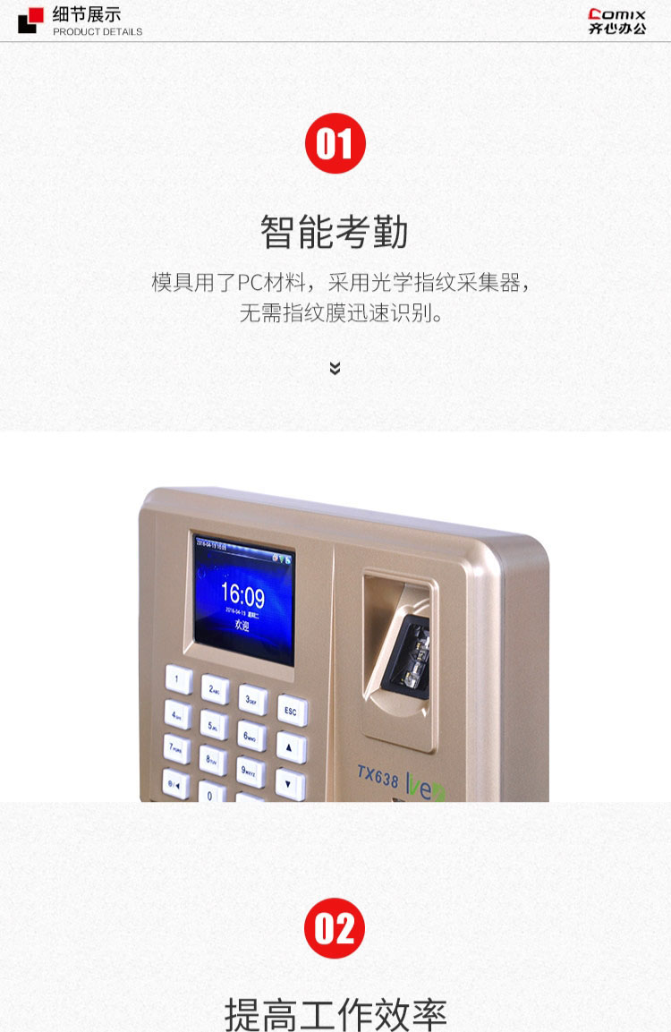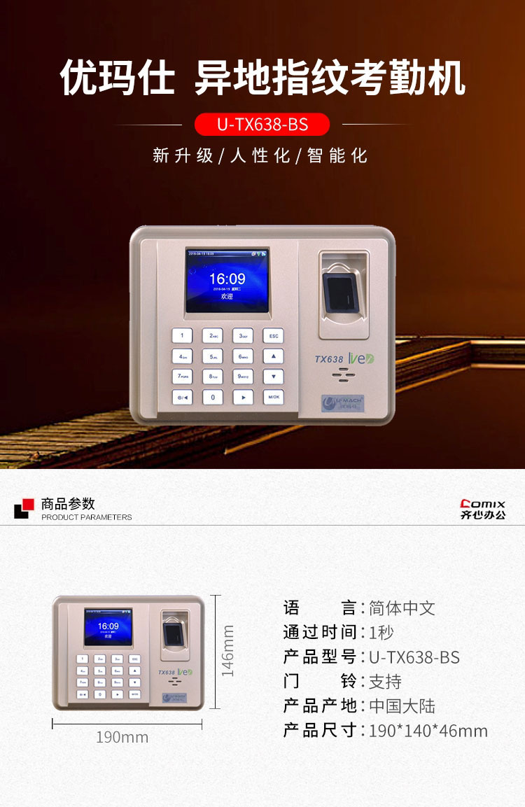 商品名称: 优玛仕 U-TX638-BS 异地指纹考勤机 配(单位:台)