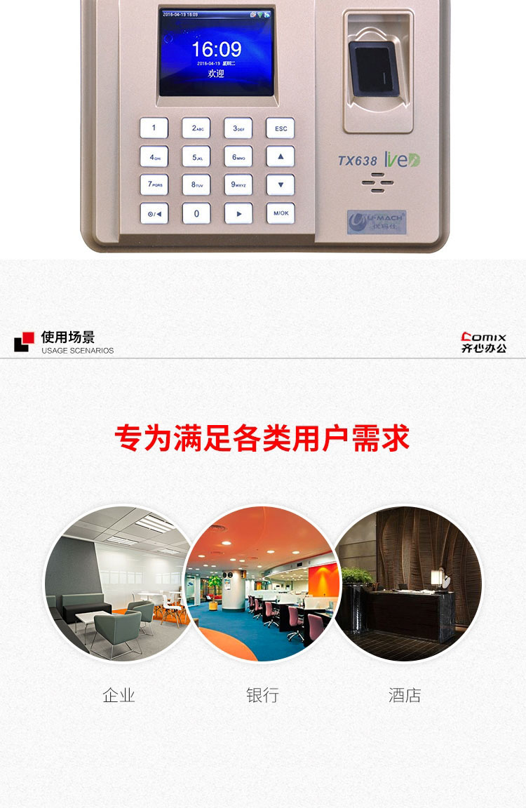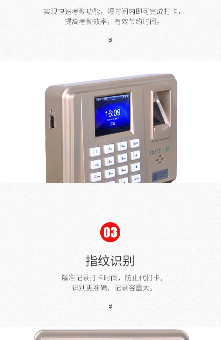 • 商品名称:优玛仕 U-TX638-BS 异地指纹考勤机 配(单位:台)
