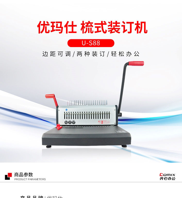 商品名称: 优玛仕 U-S88 梳式装订机 配(单位:包)