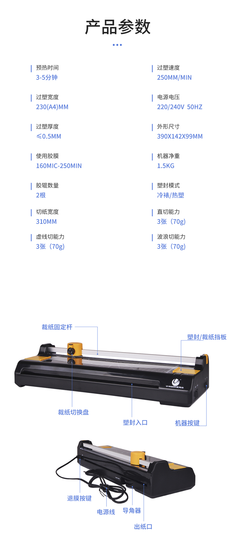 • 商品名称:优玛仕 U-230S 高速塑封机 配(单位:台)