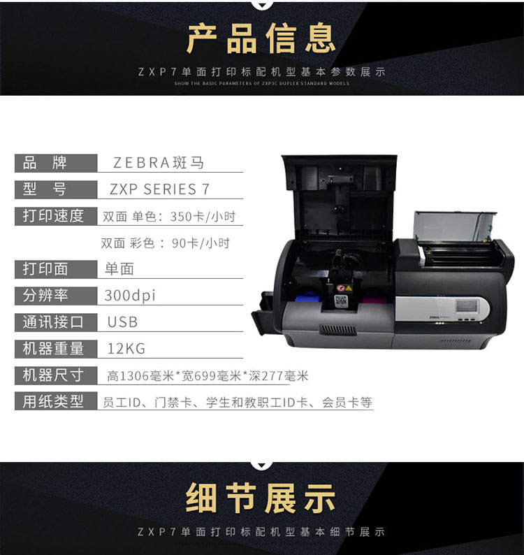 • 商品名称:斑马 ZXP/Series/7 单面门禁卡打印机 黑色(单位:台)