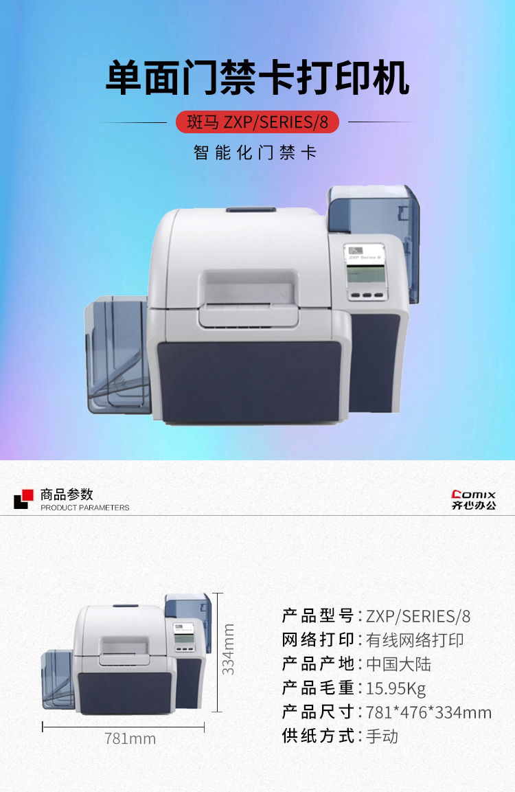 • 商品名称:斑马 ZXP/Series/8 单面门禁卡打印机 黑色(单位:台)