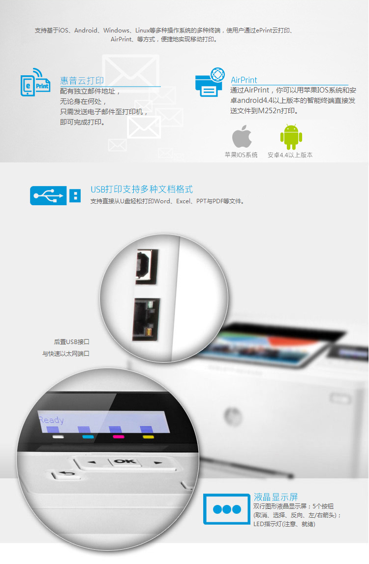 • 商品名称:惠普(HP) Color LaserJet Pro M252n 代替M251N彩色激光网络打印机(单位:台)