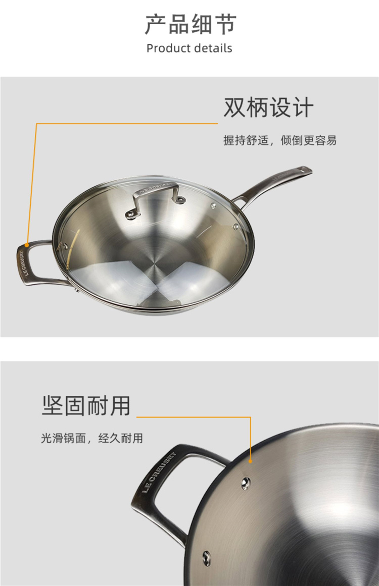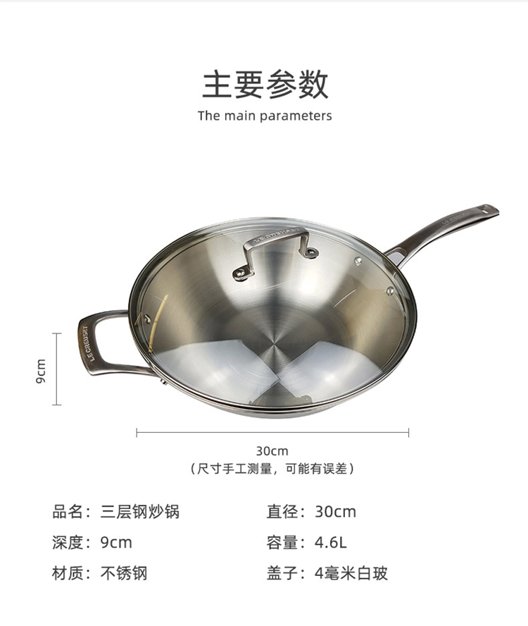 • 商品名称:酷彩 法国Le creuset 96106130000000 三层钢30cm双柄带玻璃盖 炒锅(单位:个)