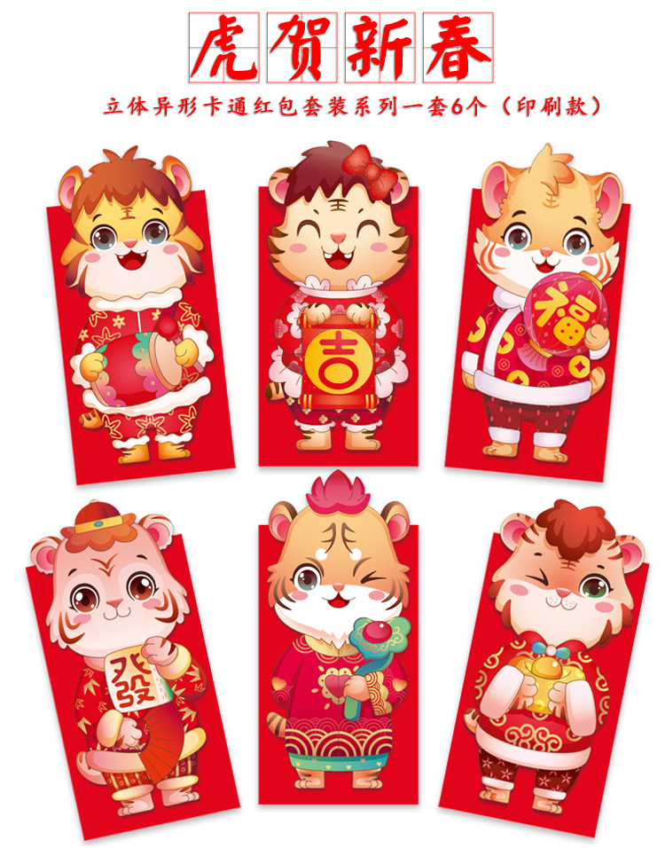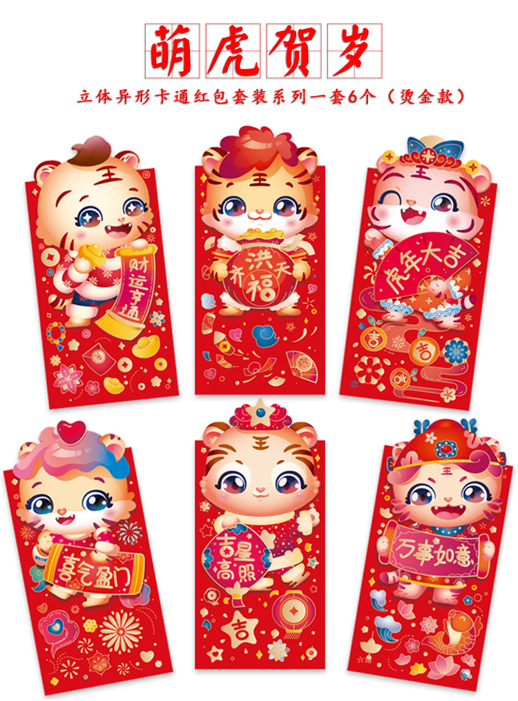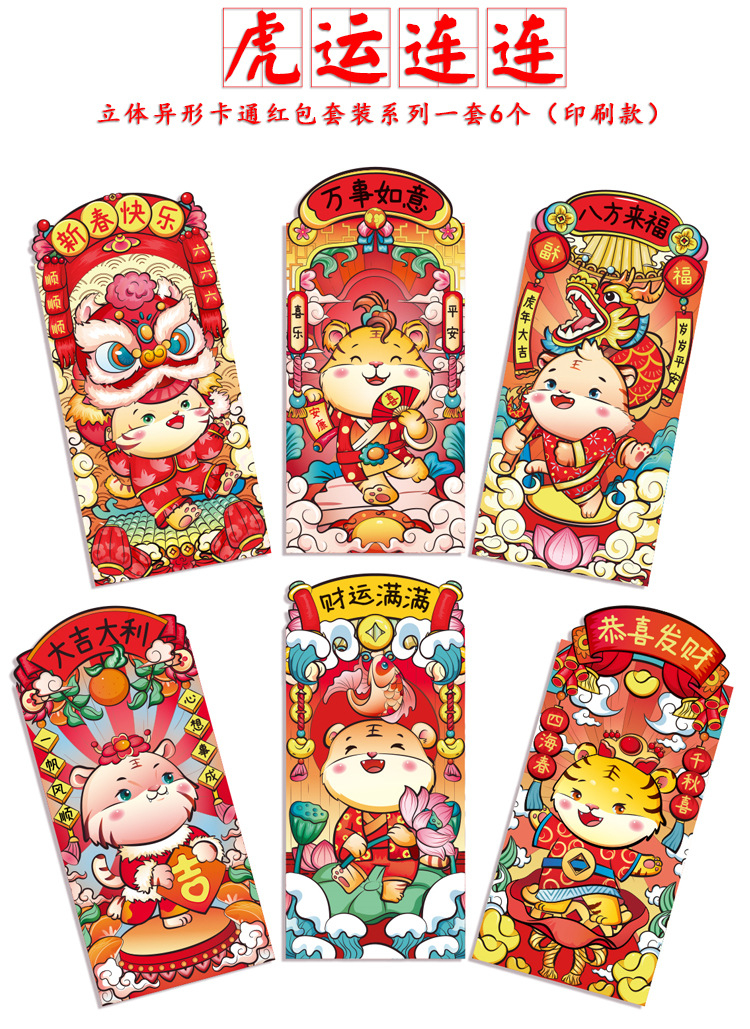 耐辉顿 8.9*16.4cm 百元平放 虎年红包 红色(6个/包)(单位:包)