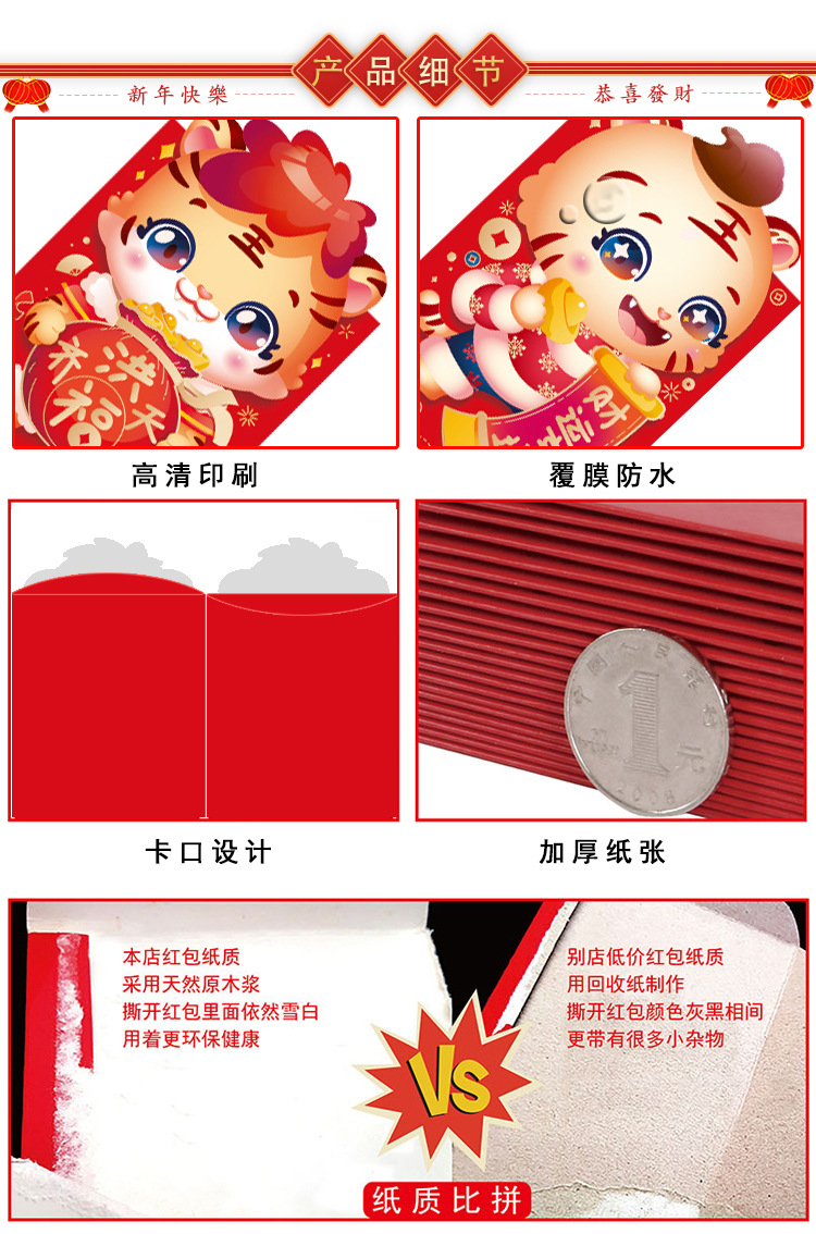 商品名称: 耐辉顿 8.9*16.4cm 百元平放 虎年红包 红色(6个/包)(单位:包)