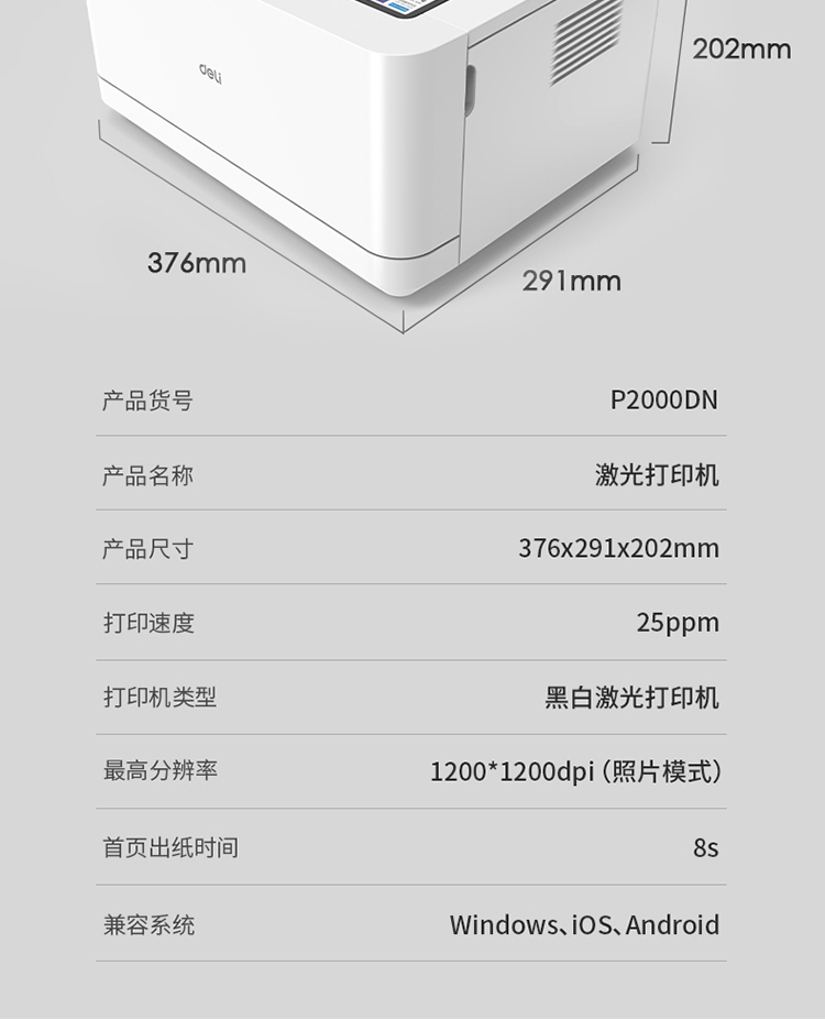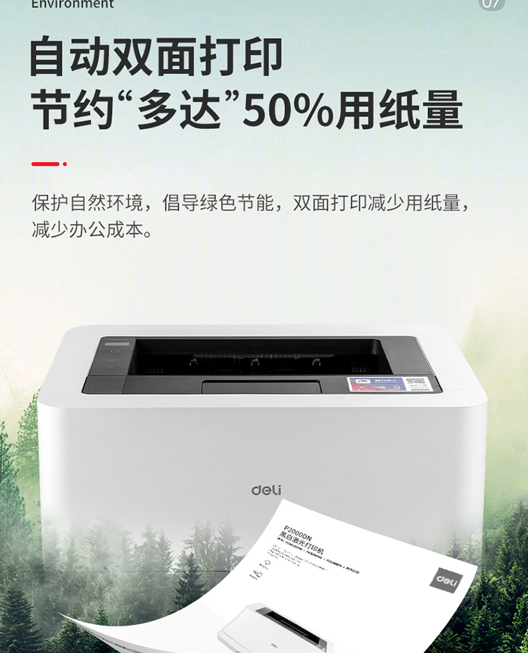 商品名称: 得力 deli P2000DN 得力(deli) P2000DN 黑白激光打印机 (计价单位:台) 白色 (单位:台)