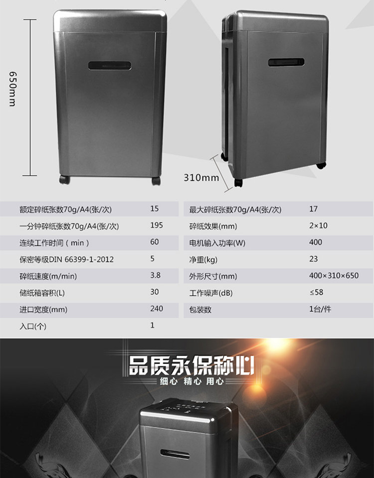 商品名称: 三木(SUNWOOD)M16 30L 锰钢侠系列碎纸机 星际灰 单位:台