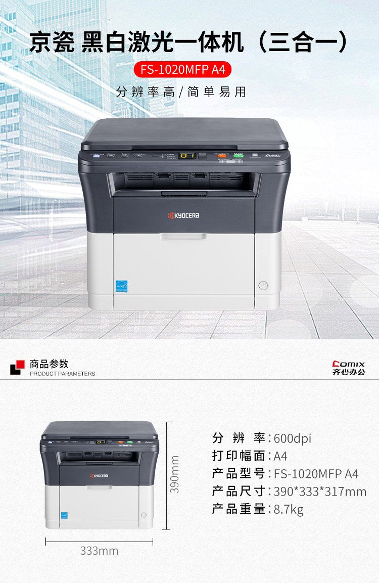 • 商品名称:京瓷 FS-1020MFP A4黑白激光一体机(三合一) (单位:台)
