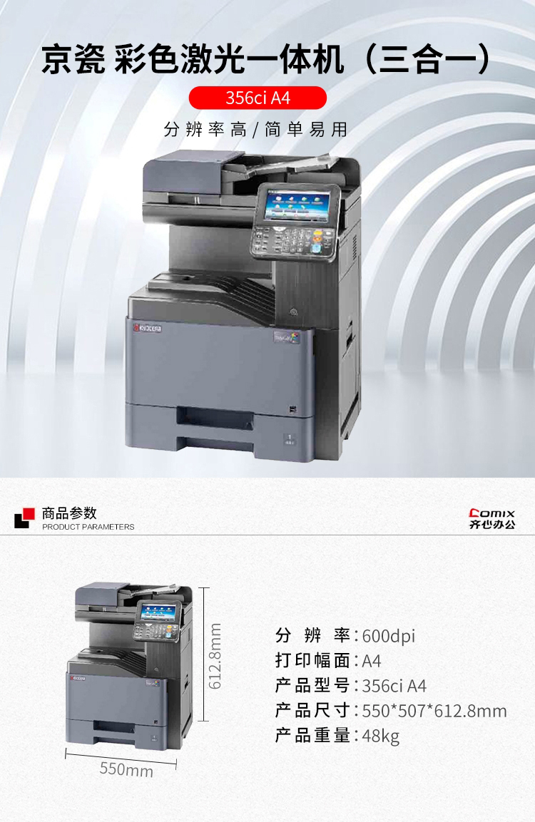 • 商品名称:京瓷 356ci A4彩色激光多功能一体机(三合一)