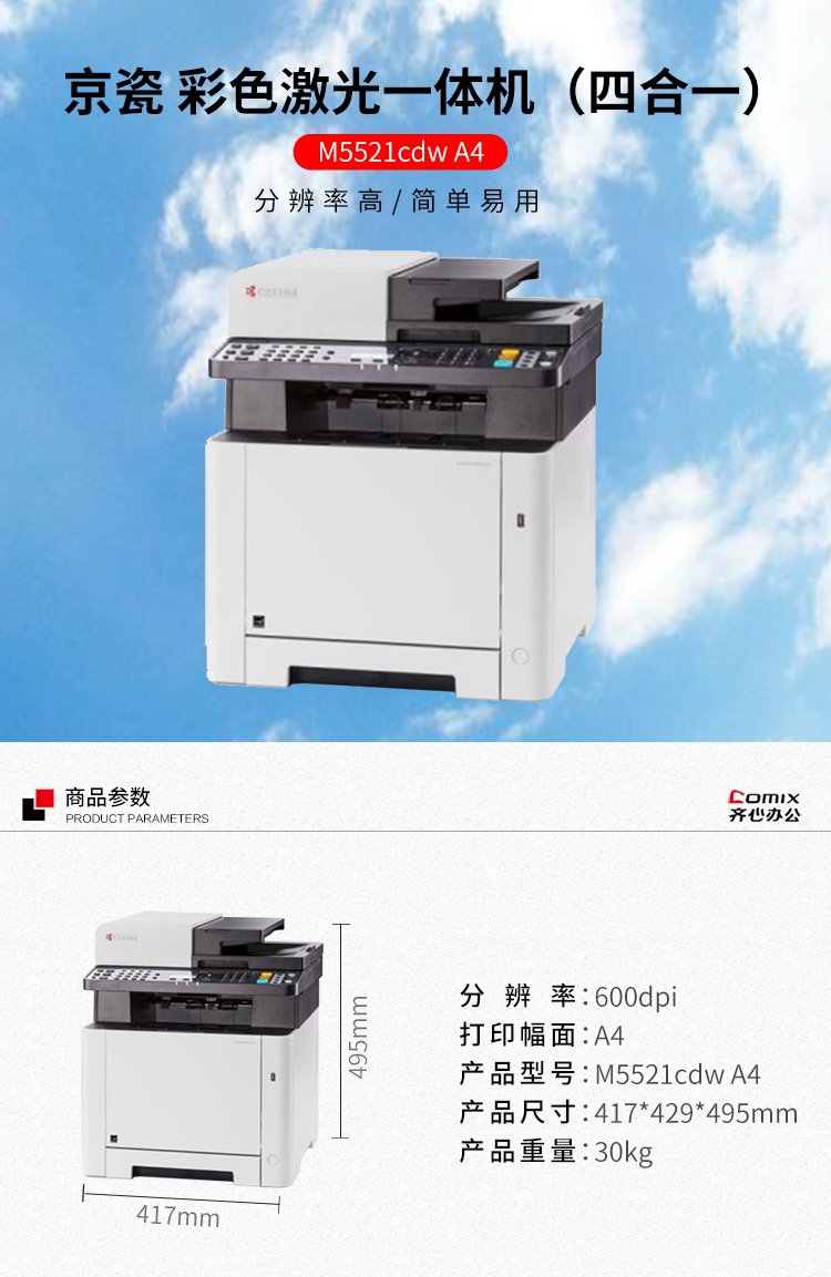 • 商品名称:京瓷 M5521cdw A4彩色激光一体机(四合一) (单位:台)