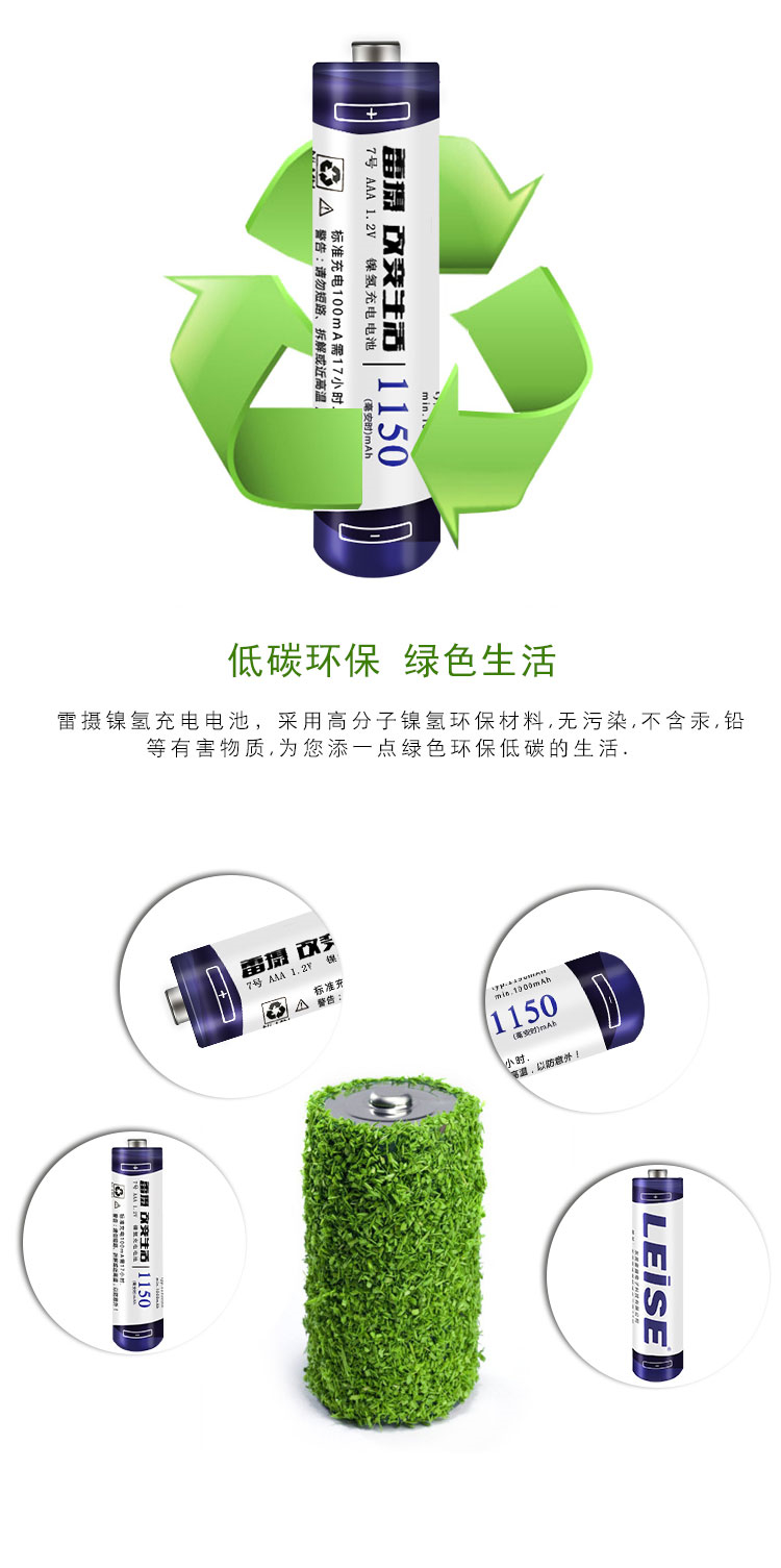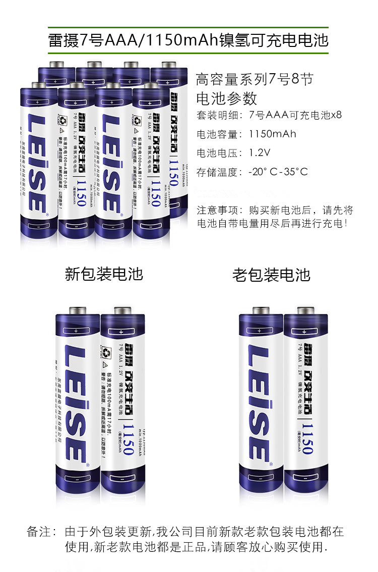 • 商品名称:雷摄(LEISE) 7号AAA1150mAhX8 高容量镍氢充电电池 (单位:盒)