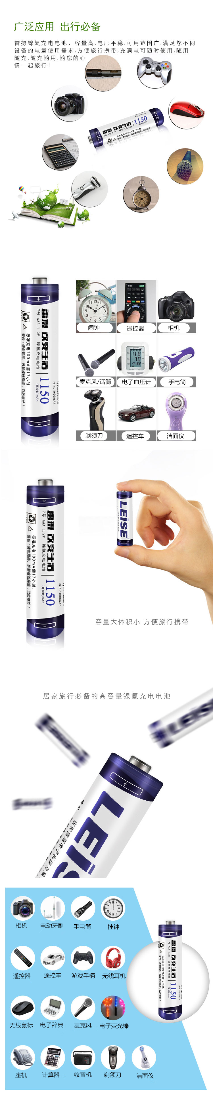 商品名称: 雷摄(LEISE) 7号AAA1150mAhX8 高容量镍氢充电电池 (单位:盒)