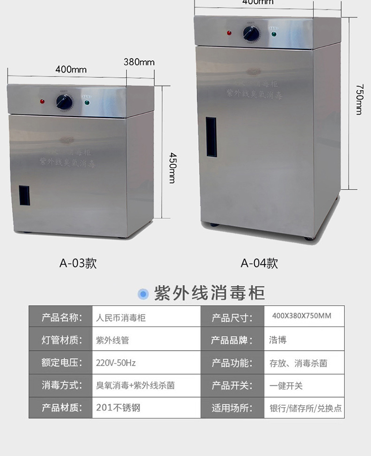 商品名称: 浩博 A-04 紫外线 钞票钱币消毒柜(单位:台)