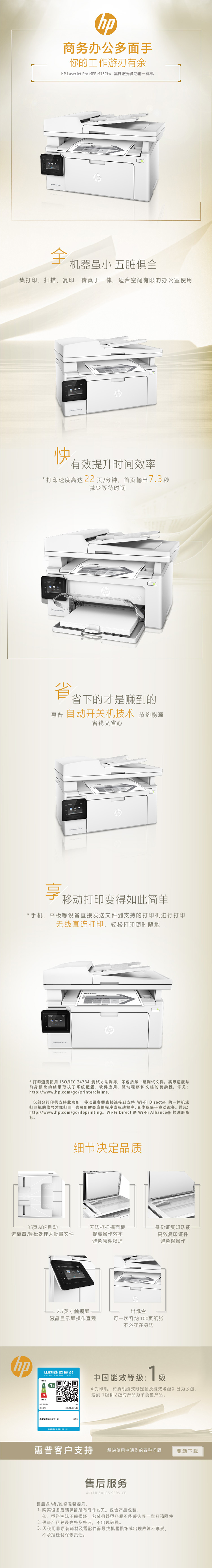 • 商品名称:惠普 LaserJet Pro MFP M132fw 黑白激光多功能一体机 白(单位:台)