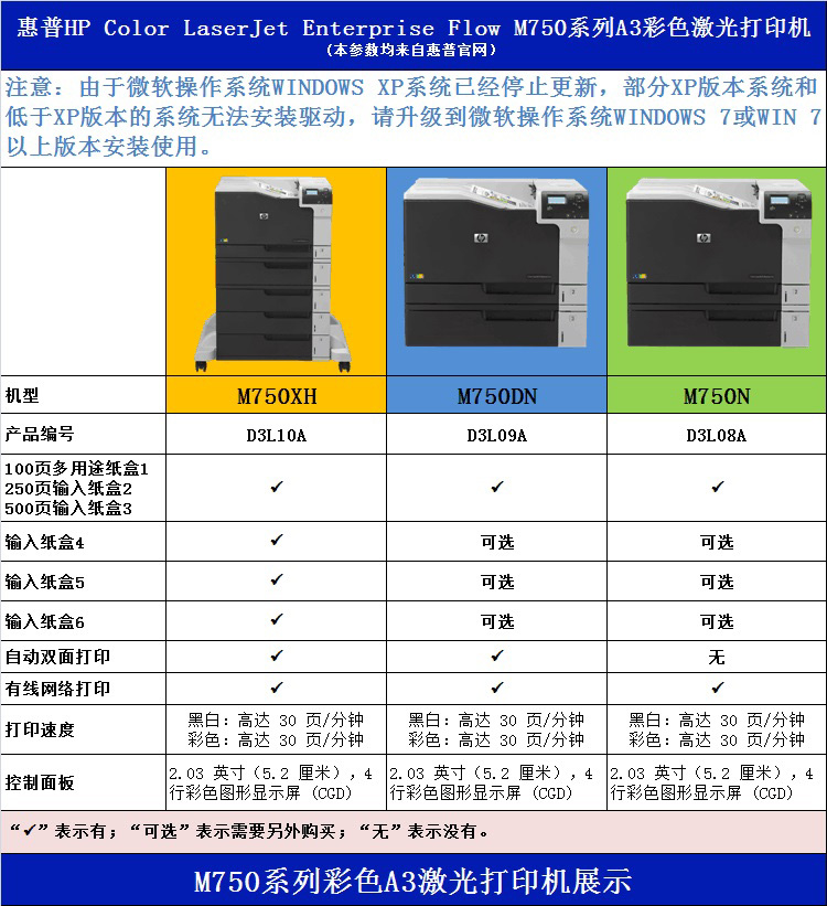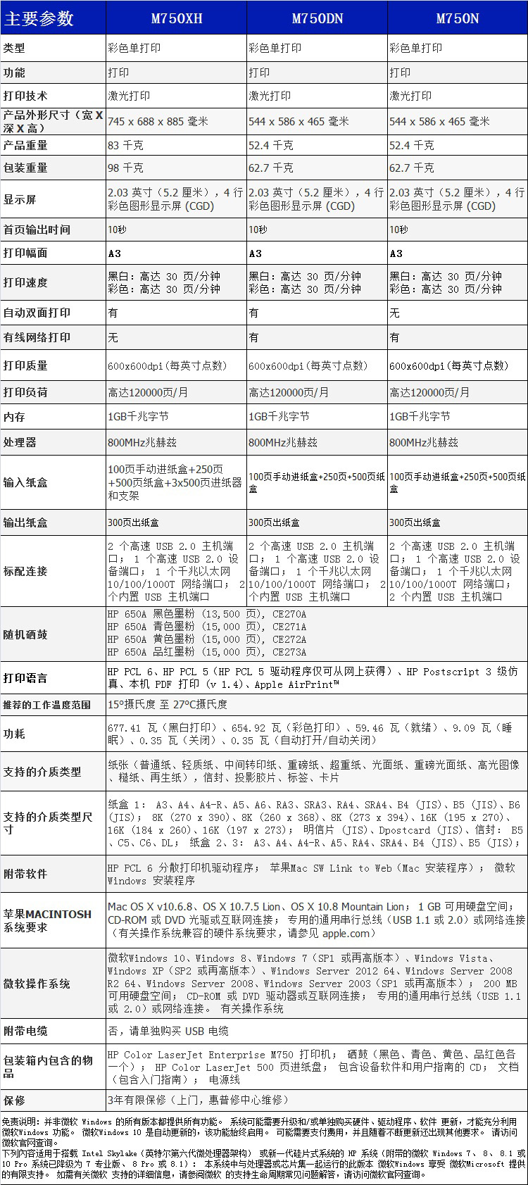 • 商品名称:惠普 Color LaserJet Enterprise M750n 彩色激光打印机 黑白(单位:台)