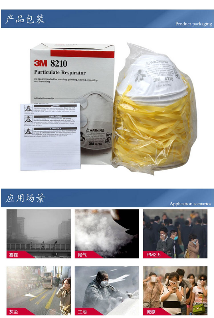 • 商品名称:3M 8210 N95 自吸过滤式 防颗粒物口罩 (20只/盒) 白(单位:盒)