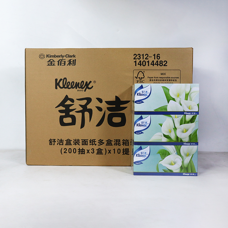 耐辉顿 金佰利擦手纸舒洁2312硬盒面巾纸抽纸餐巾纸擦手纸抽纸200抽整箱10提 30包 (单位:箱)